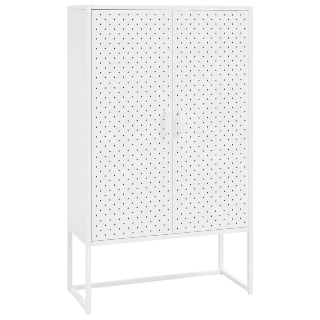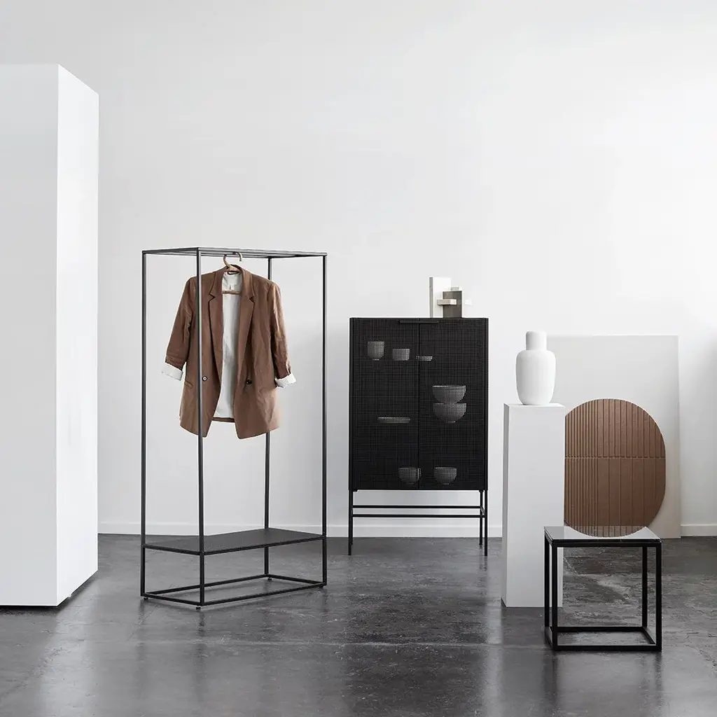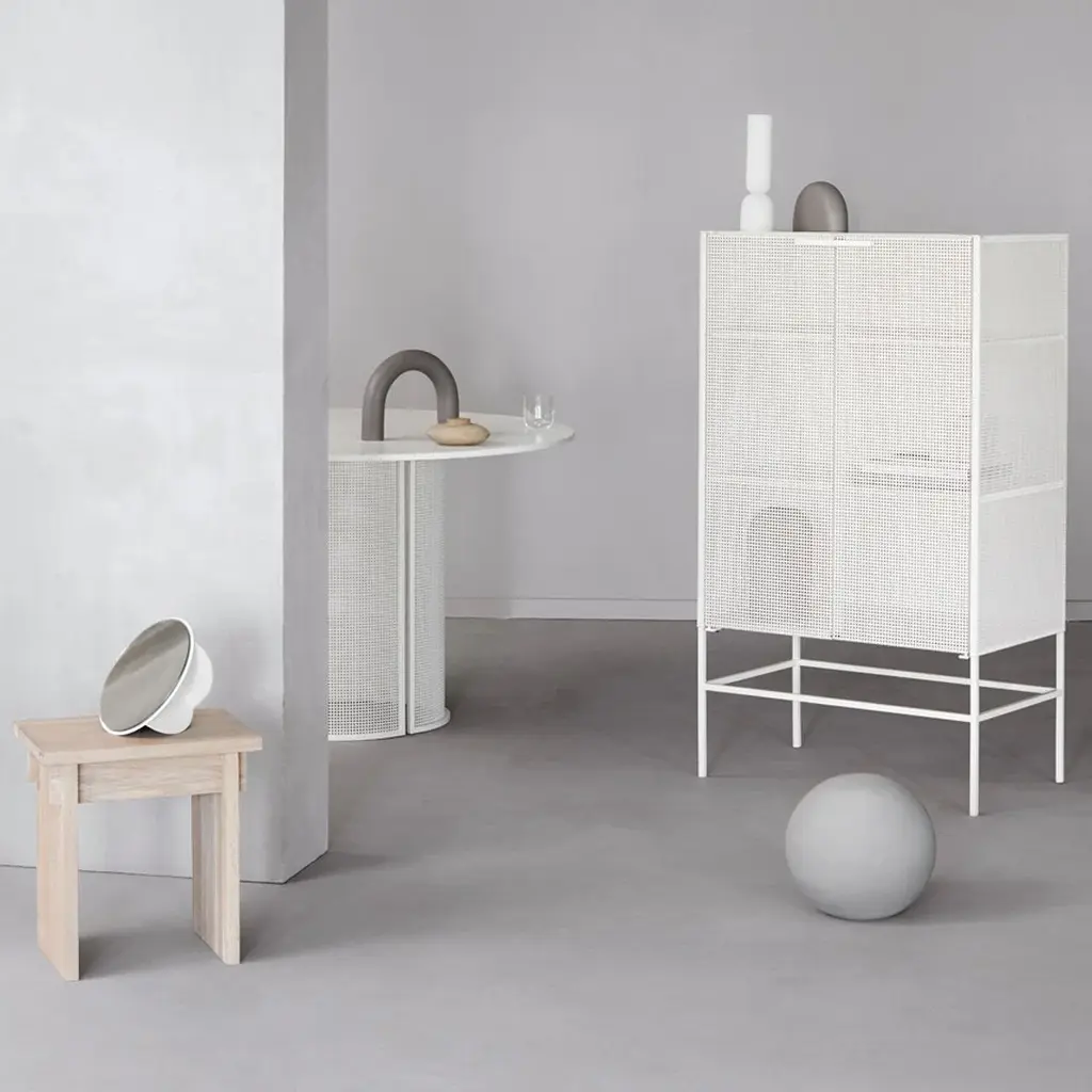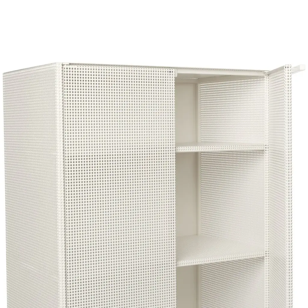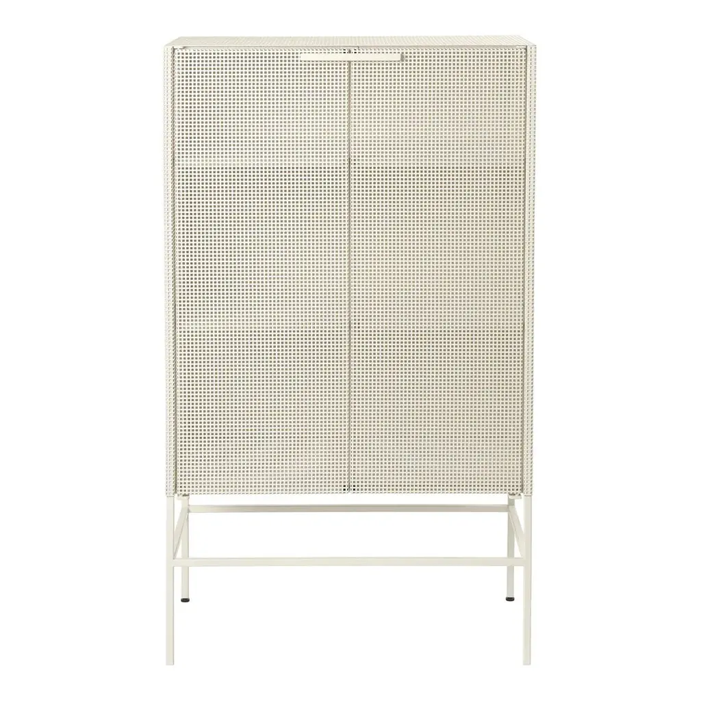 The Grid Cabinet is made of perforated steel. An elegant cabinet with a semi-transparent design.