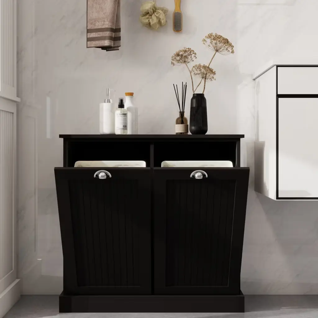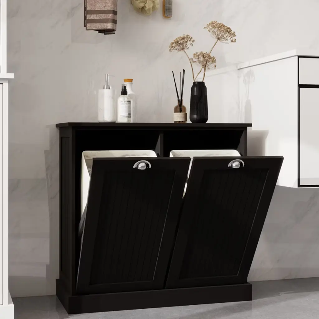 Gulches Black 33 In Accent Cabinet With Two Compartment Tilt Out Laundry Sorter And Removable Bags For Laundry Room Organization