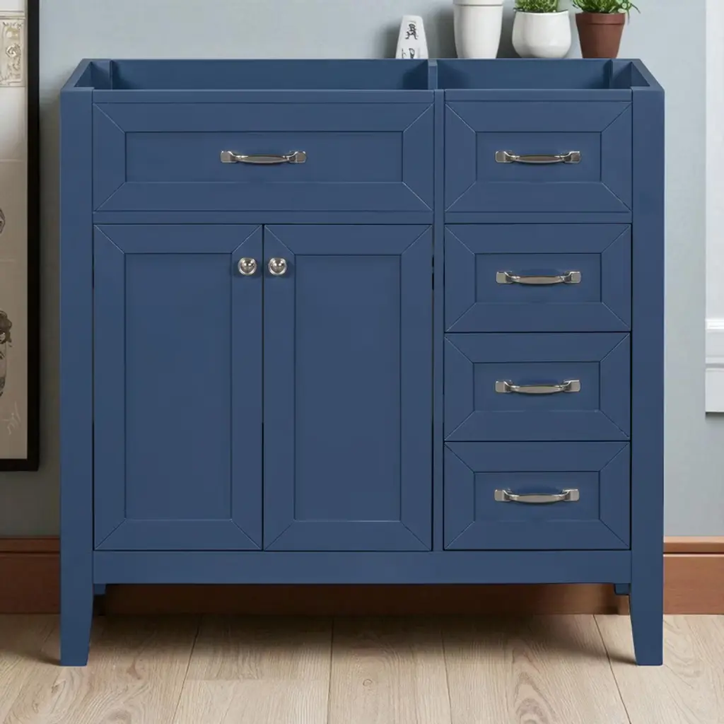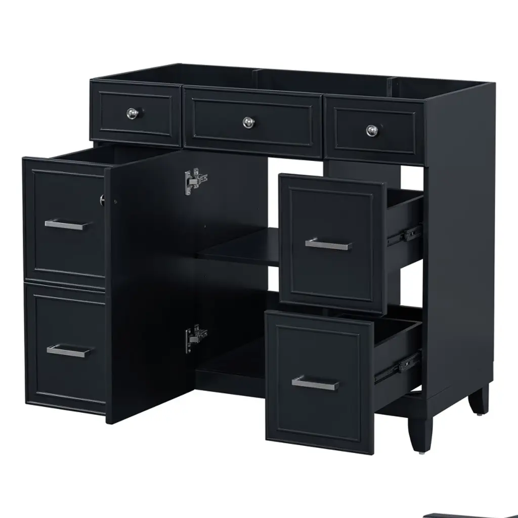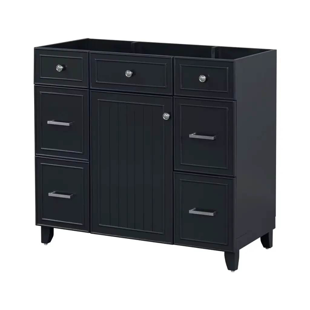 Gulches Modern 36" Bathroom Vanity Cabinet Only, Black Solid Wood Frame, Ample Storage, Soft-close Doors