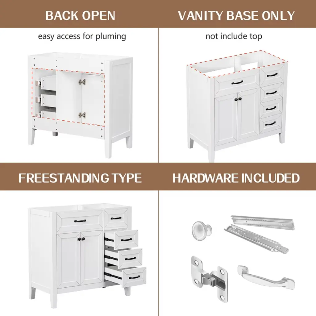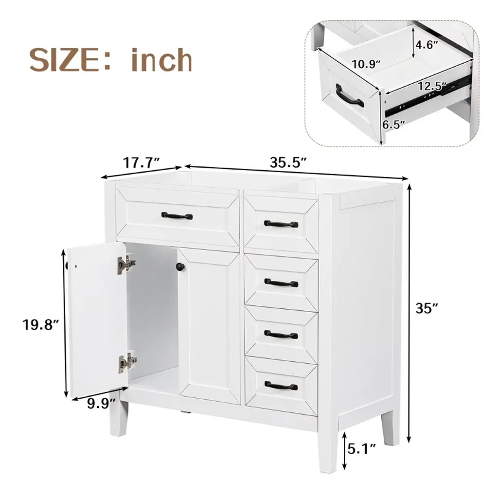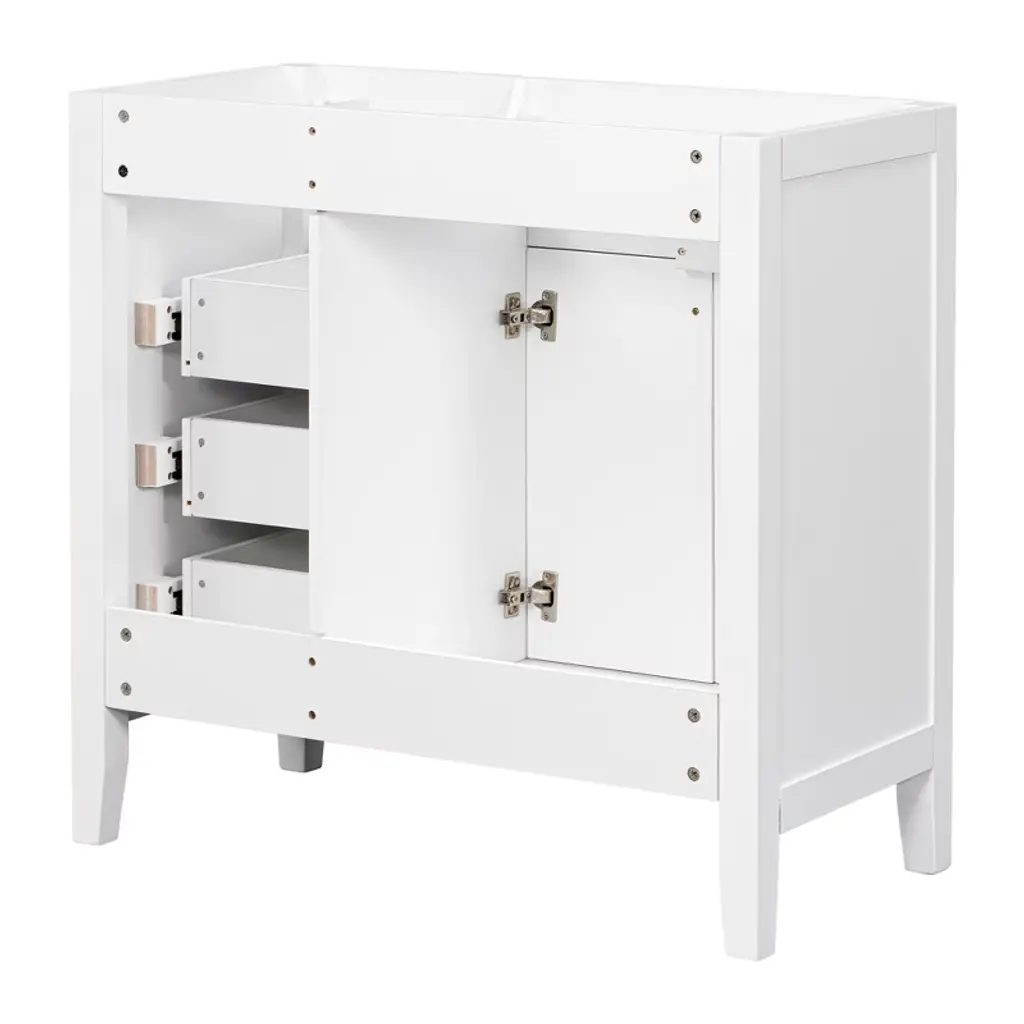 Gulches Stylish 36" Bathroom Vanity Cabinet Base Only, White Solid Wood Frame, Mdf Board, Ample Storage
