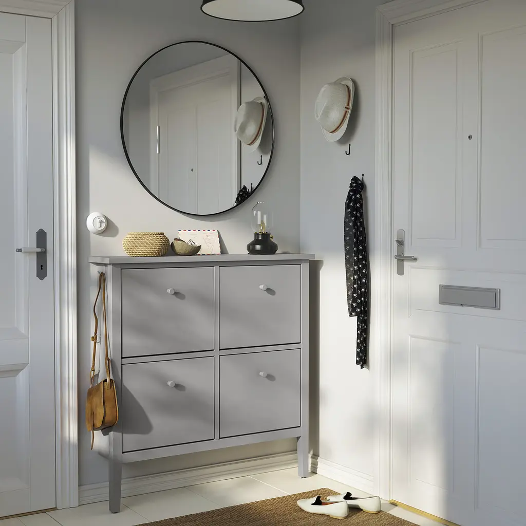 GULLABERG Shoe cabinet with 4 compartments - gray 41 3/8x8 5/8x42 1/8 ". In the GULLABERG series there is furniture for various storage needs, all in a robust-traditional design that helps you create a practical, organized and uniform home to enjoy for a long time.