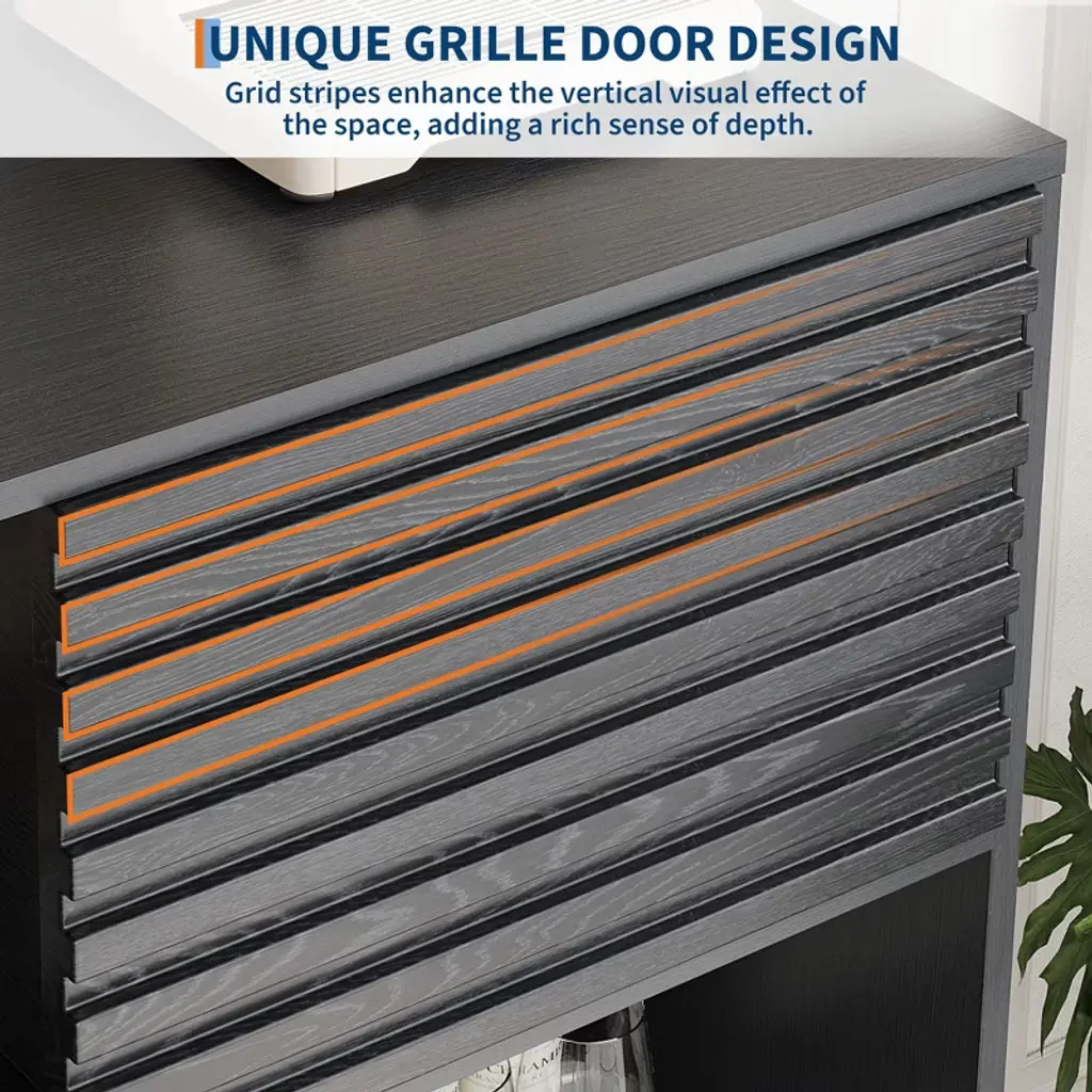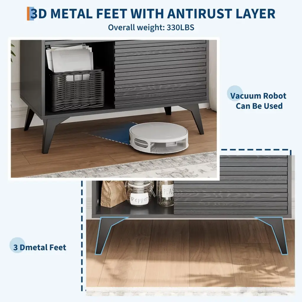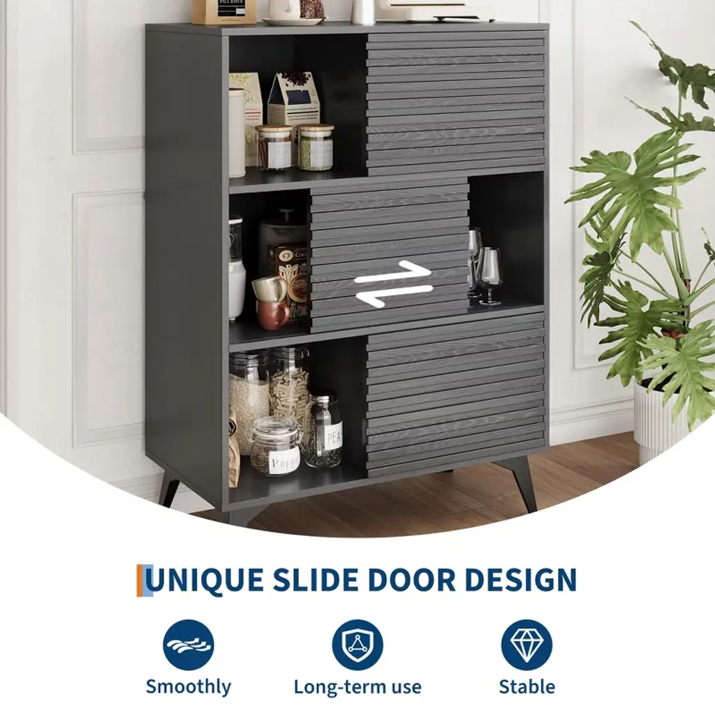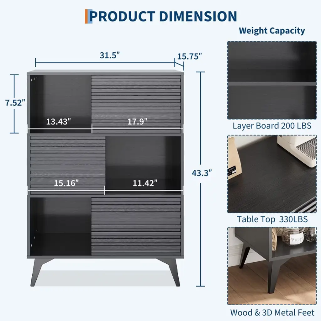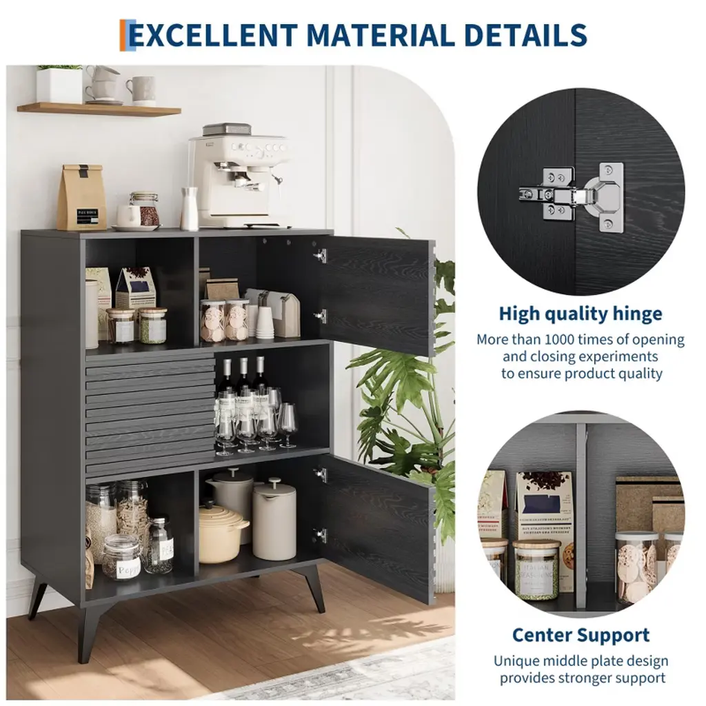 Gustowave Mid-century Modern 3-tier Display Storage Cabinet With Doors, Wooden Buffet Accent Cabinet With Strong Legs For Living Room, Black