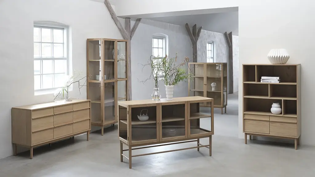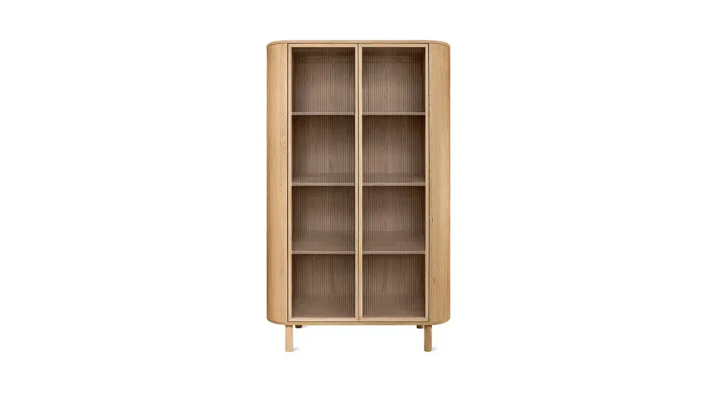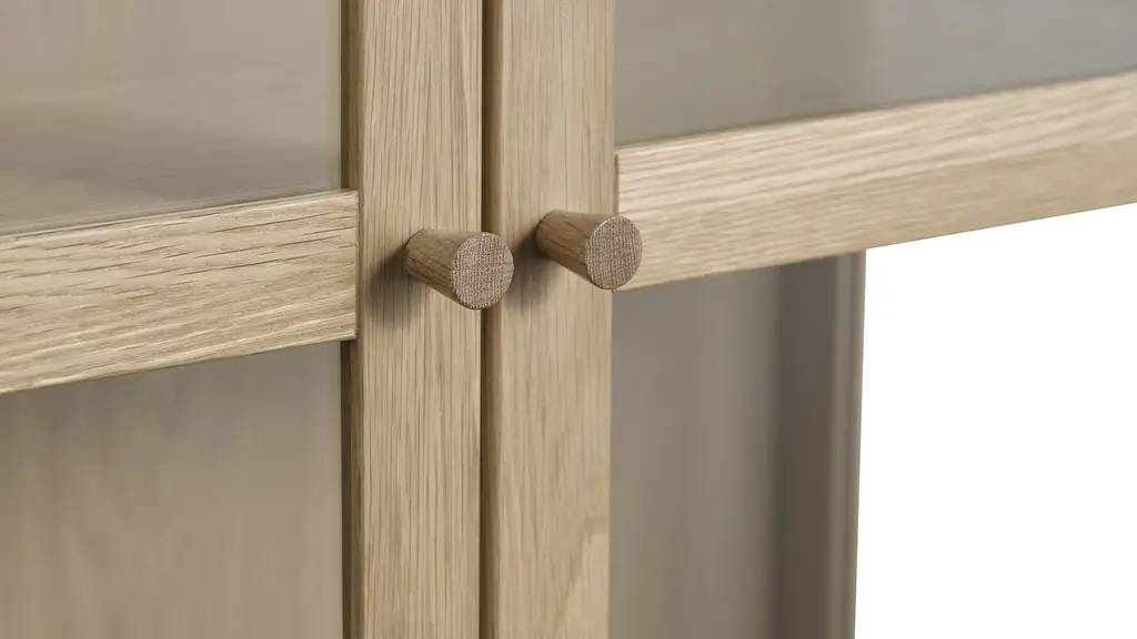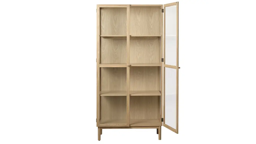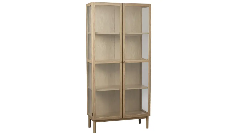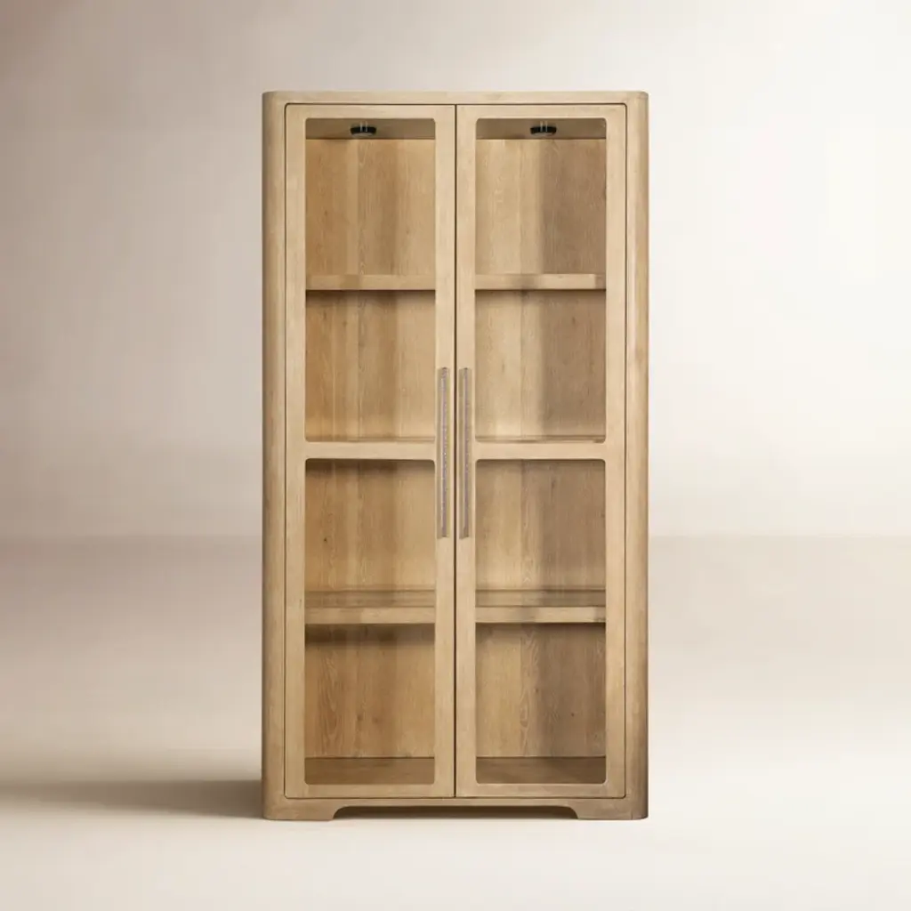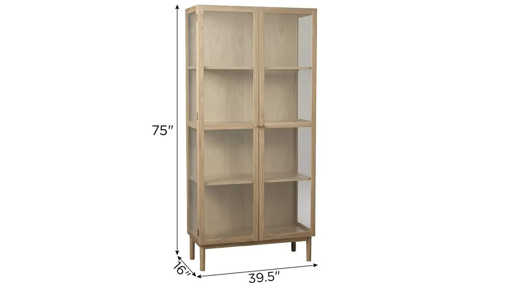 Discover the allure of Danish design with the Hamilton 75in Cabinet. Crafted from natural oak wood, this exquisite piece combines sleek lines with exceptional craftsmanship. Its minimalist aesthetic and transparent glass panels effortlessly blend traditional charm with contemporary sophistication. Showcase your treasured items on the adjustable shelves behind the glass doors, while adding a touch of elegance to your living space. Elevate your home with this versatile and stylish Danish-designed glass cabinet, a testament to the timeless beauty of natural wood and impeccable craftsmanship.