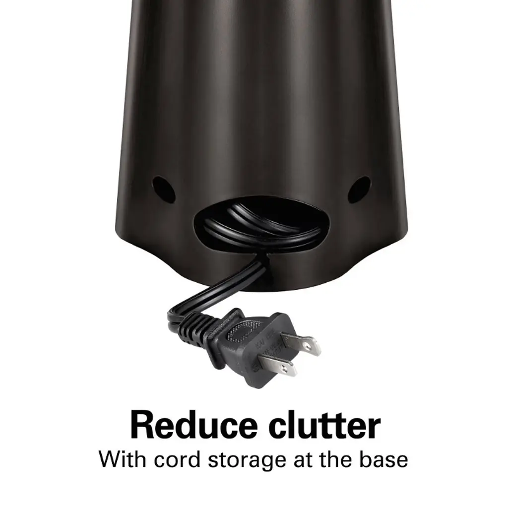 The Hamilton Beach® Extra-Tall Can Opener is easy to clean, with a washable cutting lever that easily detaches to rinse clean under the faucet. The can opener is packed with convenient features that make your life easier. It includes a built-in knife sharpener on the back of the can opener, which helps keep your kitchen knives their sharpest without the need for a separate sharpening tool. With its extra-tall design, this can opener easily opens a wide range of different-sized cans from small to large, including taller cans. The cord neatly pushes into a built-in storage area at the base of the can opener to reduce countertop and cabinet clutter. This electric can opener also has a convenient auto shutoff feature to free your hands for other kitchen tasks. Convenient features like these are why consumers love our can openers. We are the best-selling can opener brand in America.*