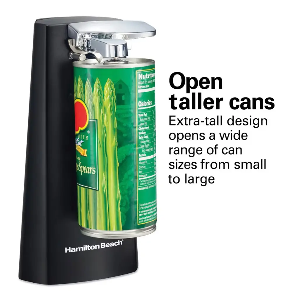 Hamilton Beach Black Can Opener 76702: Electric Freestanding Kitchen Tool, 1 Year Warranty, Spot Clean, 9" Height