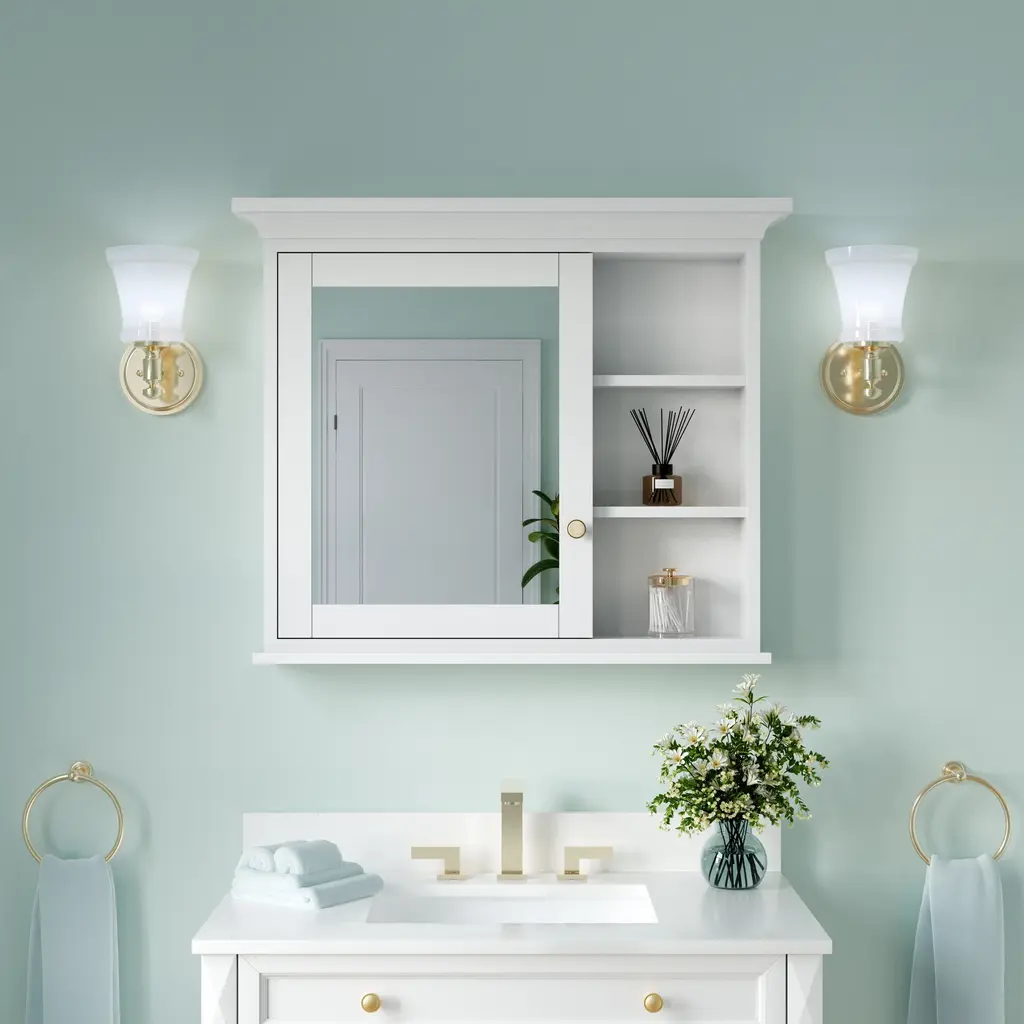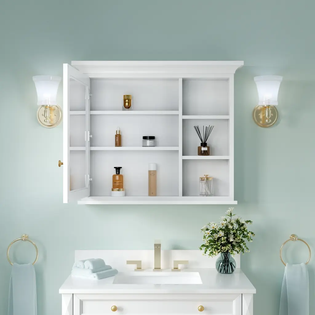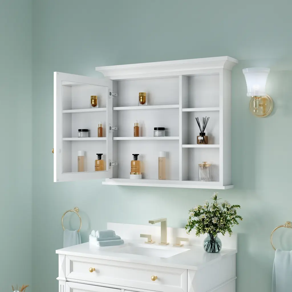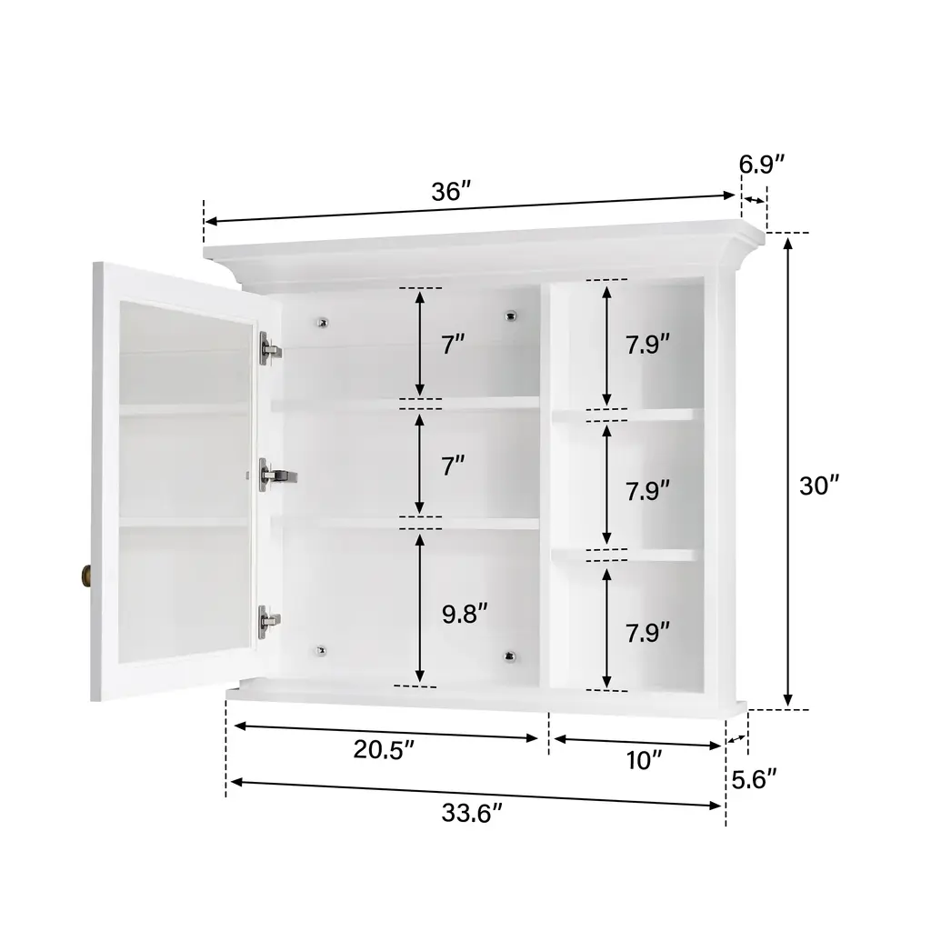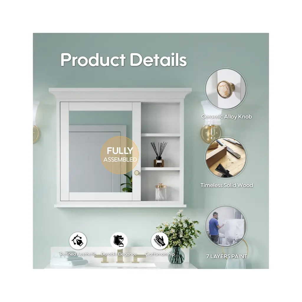 Handmade Solid Wood Medicine Cabinet With Ample Storage Space In White, 36"x30"