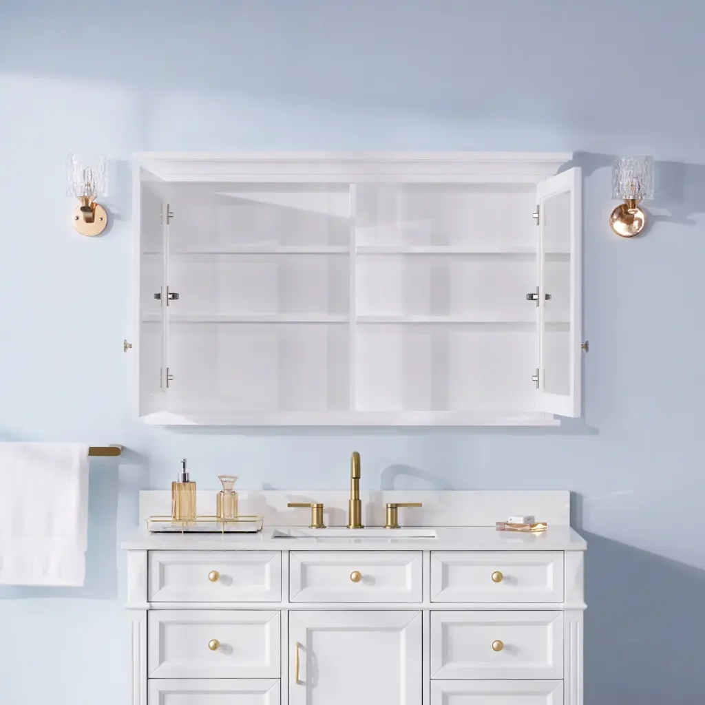 Handmade Solid Wood Medicine Cabinet With Ample Storage Space In White, 48"x30" Double Doors