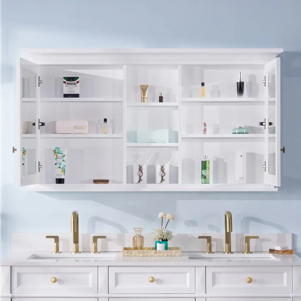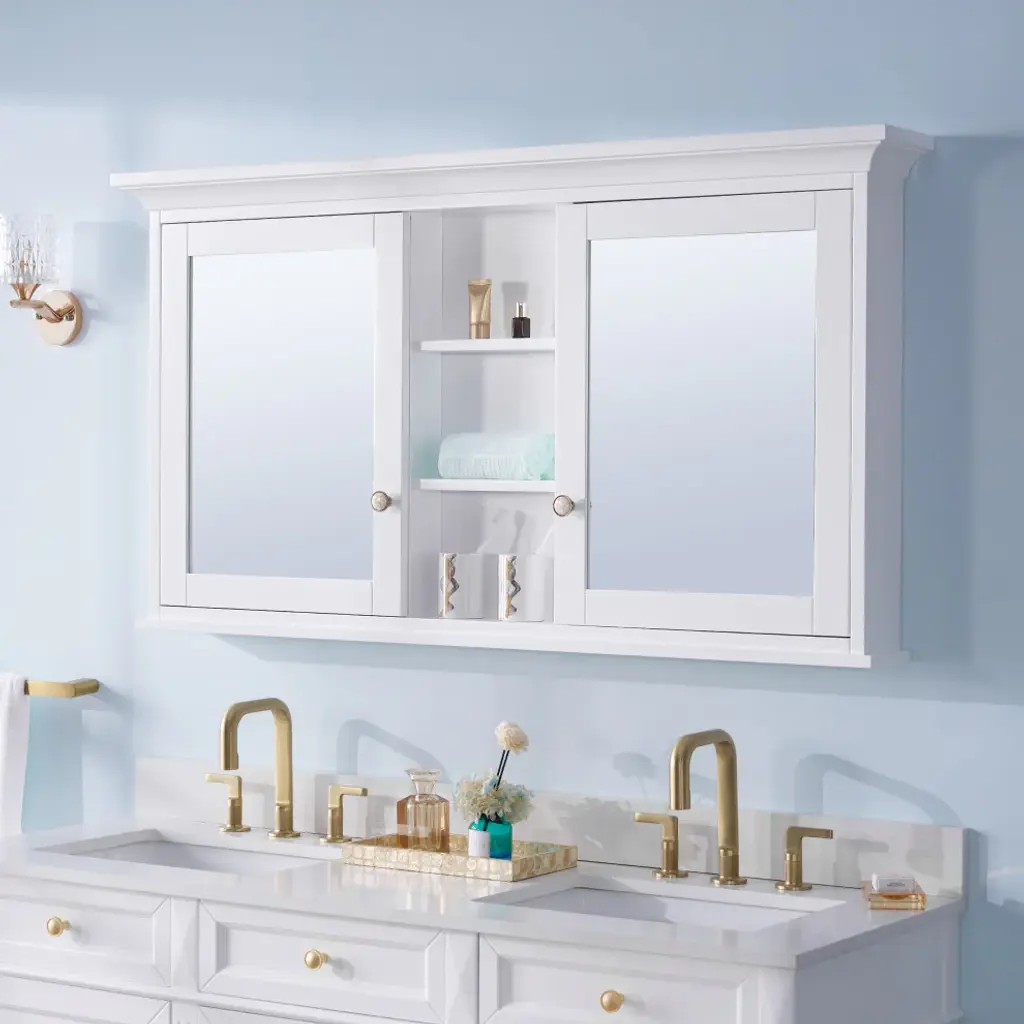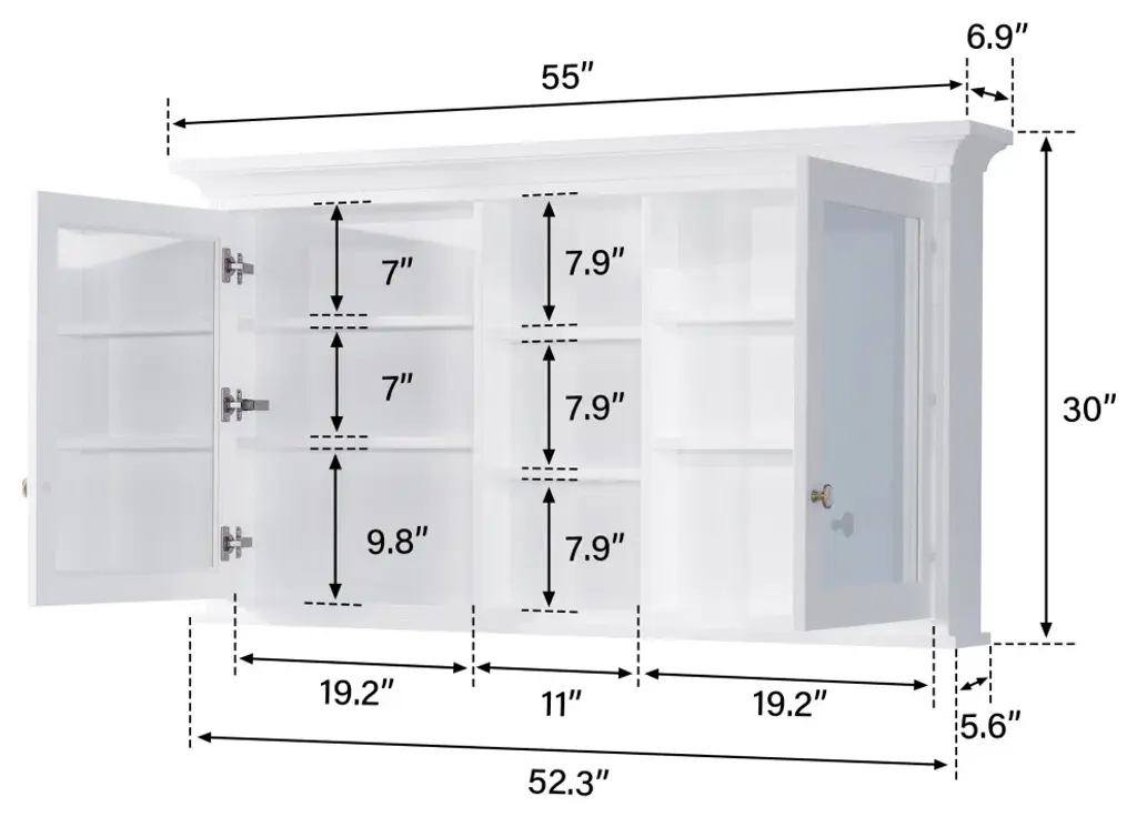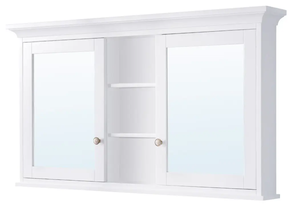 Handmade Solid Wood Medicine Cabinet With Ample Storage Space In White, 55"x30"