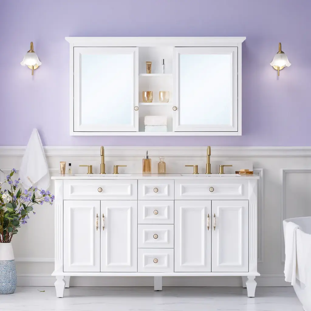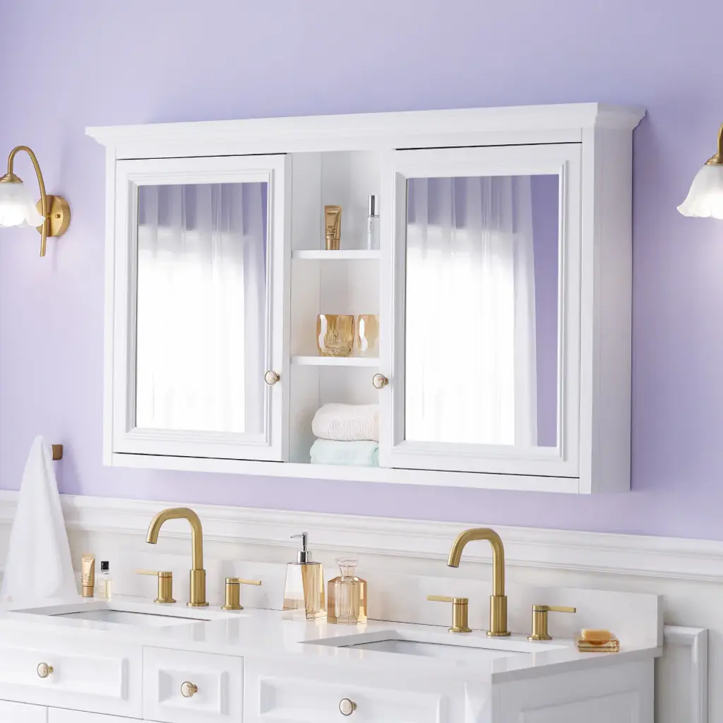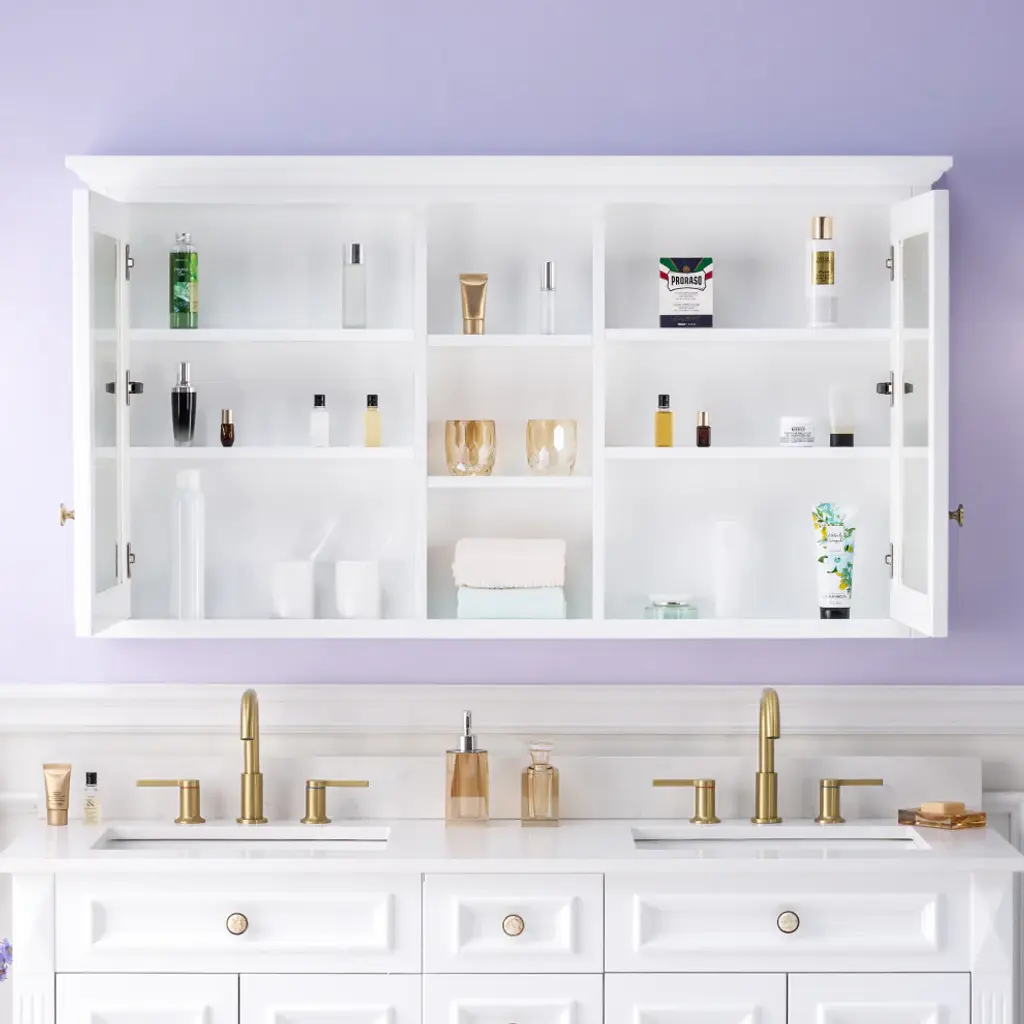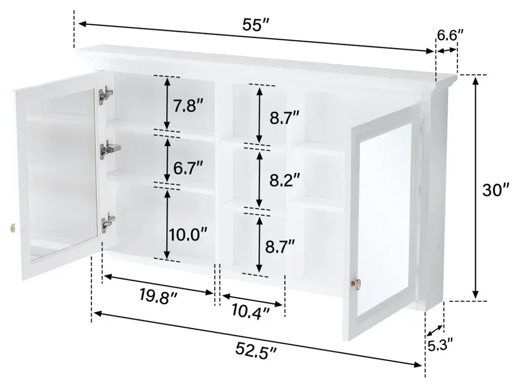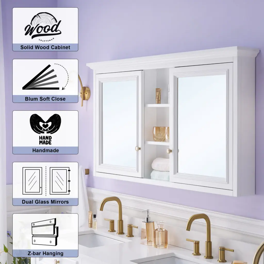 Handmade Solid Wood Medicine Cabinet With Soft-Close Door In White, 55"x30", Double Doors