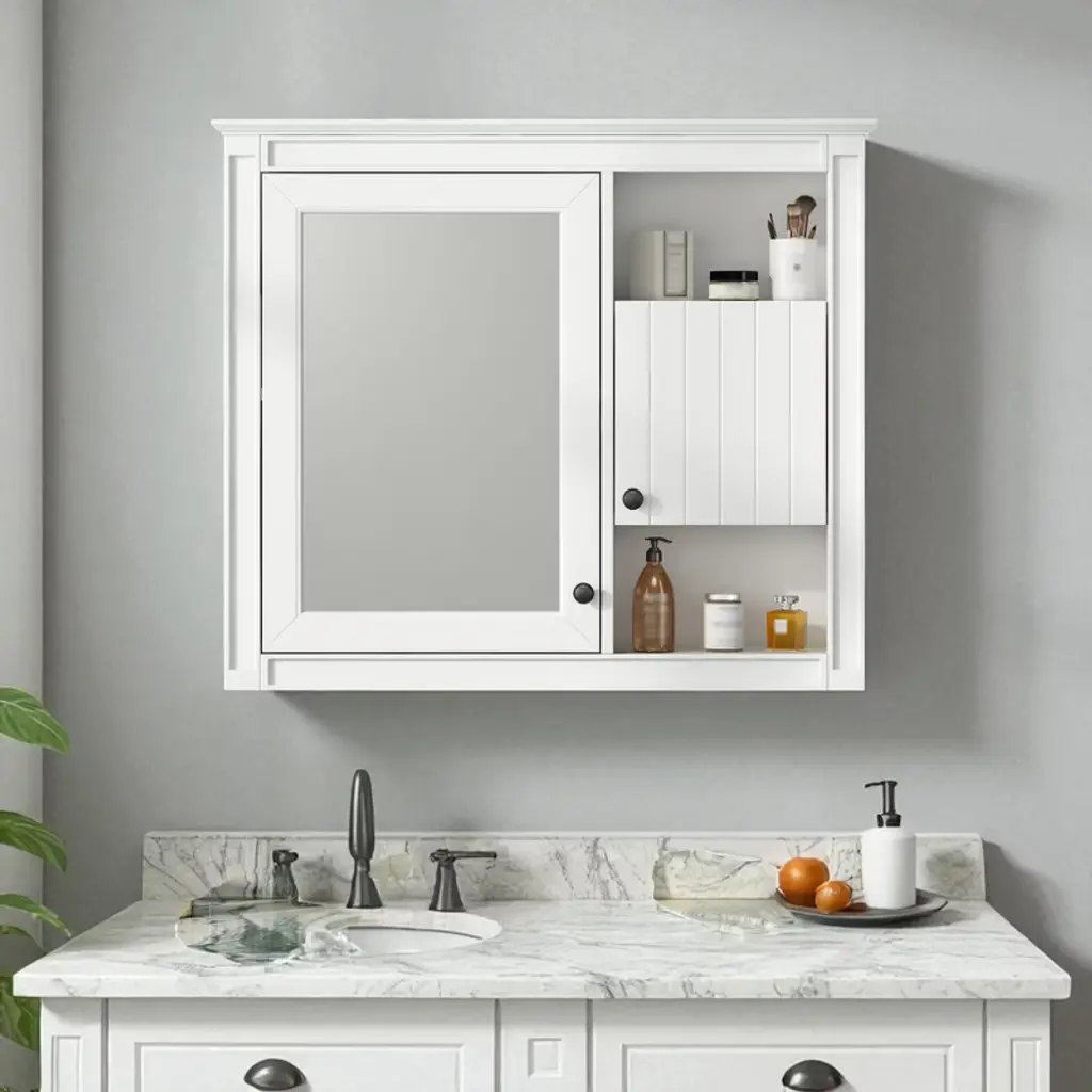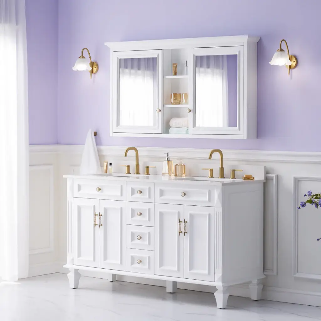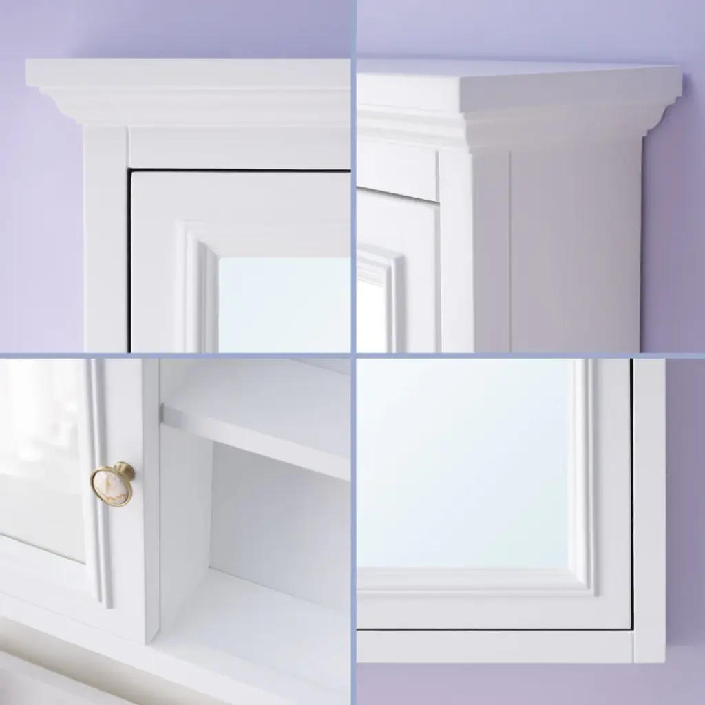 Durable Solid Wood Frame: Constructed from high-quality solid wood, ensuring longevity and a sturdy build.Soft-Close Door: Features 2 soft-close doors to prevent slamming and reduce wear.Elegant Storage Solution: Equipped with 4 interior solid wood shelves and 2 exterior solid wood shelves, providing ample space for toiletries and essentials.Metal Alloy Hardware with Porcelain Accents: Decorative metal alloy hardware paired with porcelain accents for a refined look.Premium Hinge System: Germany Hettich soft-close hinges offer smooth and quiet door operation.Z-Bar Hangs Vertically: The mirror cabinet features a Z-bar for secure and easy vertical wall mounting, saving space while adding both function and style to your bathroom.