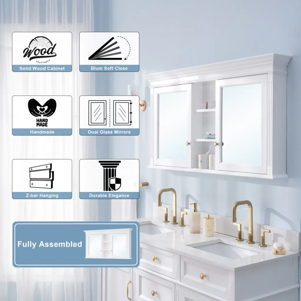 Handmade Solid Wood Medicine Cabinet With Soft-Close Door, White, 55"x30"