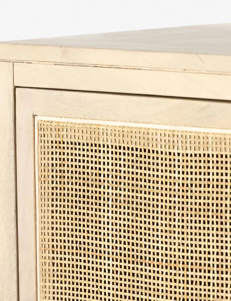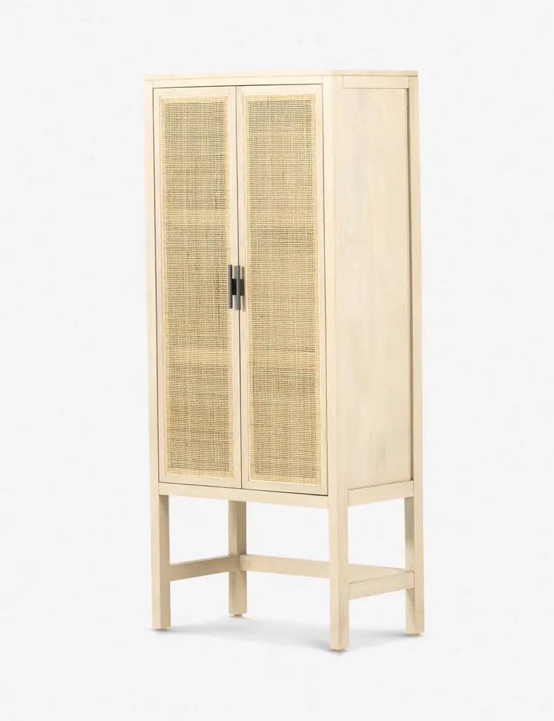 Clean lines and an airy profile bring a cool coastal feel to the Hannah cabinet. We love the classic touch of the woven cane front for its natural texture and warmth. This narrow cabinet offers ample storage and a compact footprint, making it a perfect fit for hallways, bedrooms, or smaller spaces.