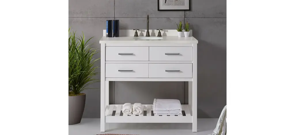 Bring beauty to your bathroom with the timeless Harrison 36" Vanity Cabinet, combining traditional and modern influences. Perfect for stashing washcloths, towels, makeup, and other bathroom accessories.
