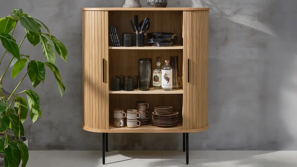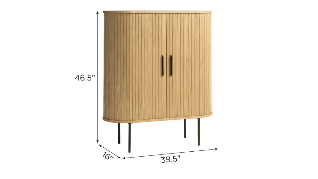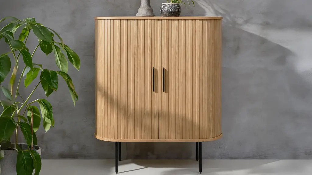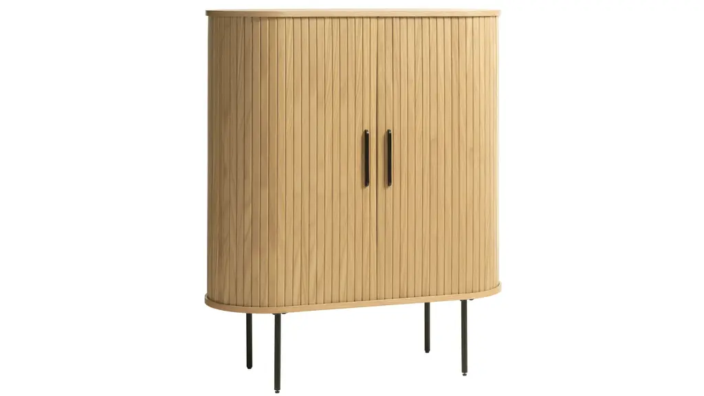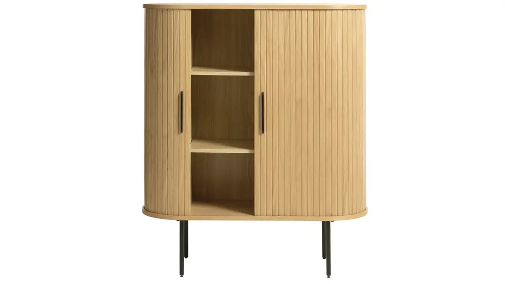 Combining the retro allure of mid-century design with industrial characteristics for a modern touch, the Hattie Accent Cabinet w/Sliding Doors is sure to sit naturally within many existing interior styles. Made from engineered wood, this cabinet has a certain charm. Sliding slatted paneling on the main body of this piece further elevates its modern appeal, whilst lending this cabinet its unmistakable character.