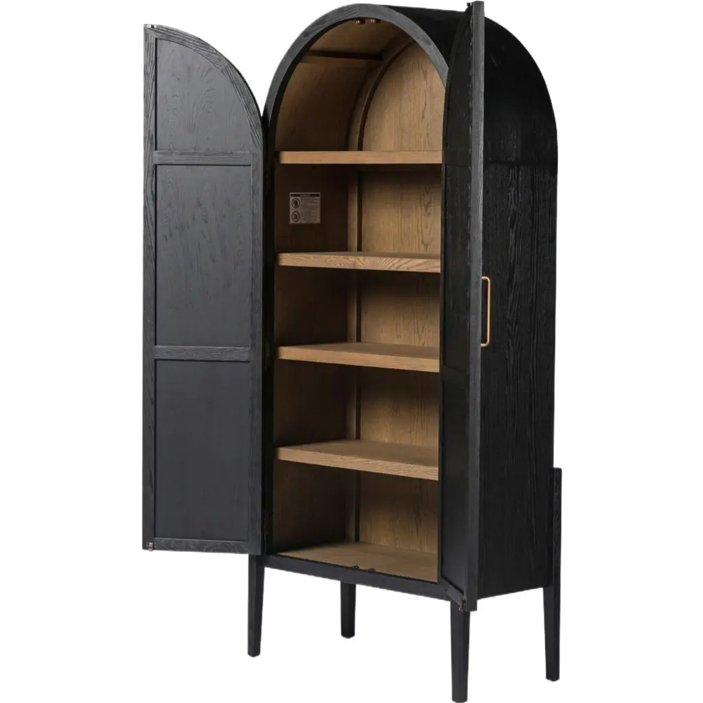 Store it in style with the Hattie Panel Door Cabinet. This beautifully shaped cabinetry features spacious interior shelving and recessed wood panel doors, perfect for storing your treasures. Whether you're organizing kitchenware, favorite books, or cherished objects, this cabinet offers a stylish and functional solution for your storage needs.