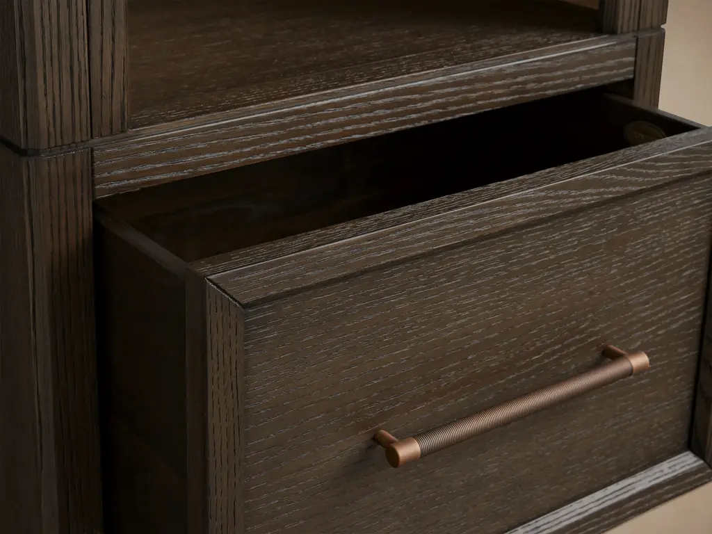 With open arches carved from oak wood, our Hattie Entryway Cabinet brings architectural beauty and a sense of calm to the rhythm of daily life. Hooks, shelves, and drawers offer intuitive storage for coats, bags, and essentials, thoughtfully designed in sizes suited to both compact and expansive entryways.