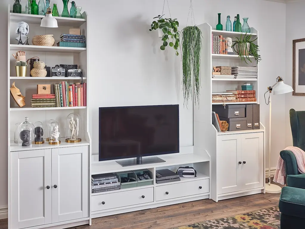 HAUGA High cabinet with 2 doors - white 27 1/2x78 3/8 ". Designed to be used both on its own throughout the home and is also a perfect fit with other furniture in the HAUGA series, either to coordinate the style or create bigger storage solutions. 2 stationary and 4 adjustable shelves included.