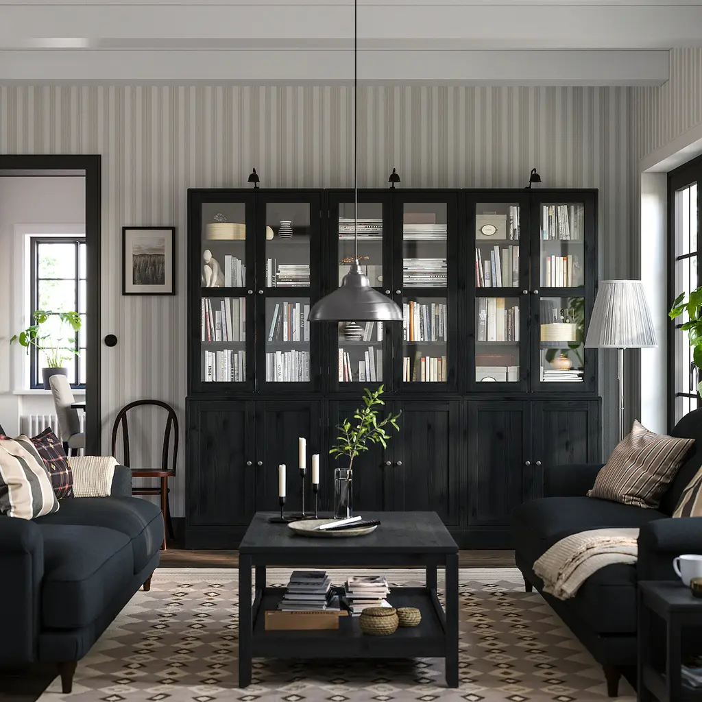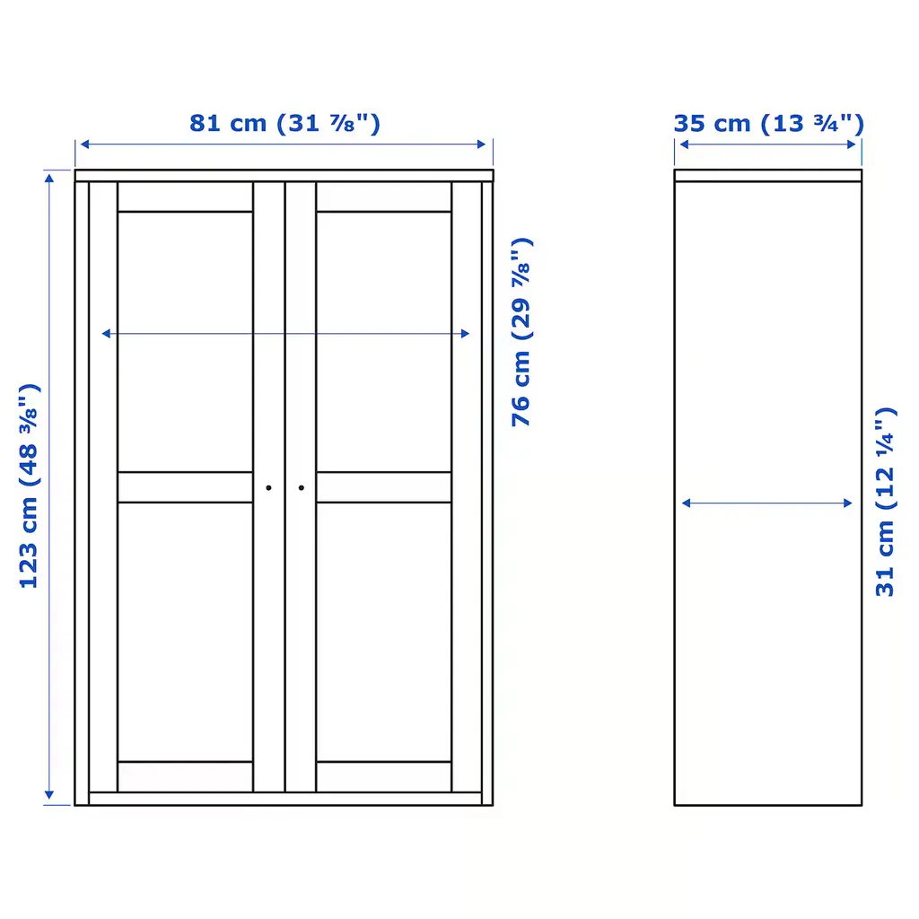 HAVSTA Glass-door cabinet - black 31 7/8x13 3/4x48 3/8 ". By adding a plinth in a compatible size, you can convert any HAVSTA stackable unit into a standalone. Glass doors keep your finest items free from dust but still visible. For safety reasons this furniture shall not be hung on the wall.
