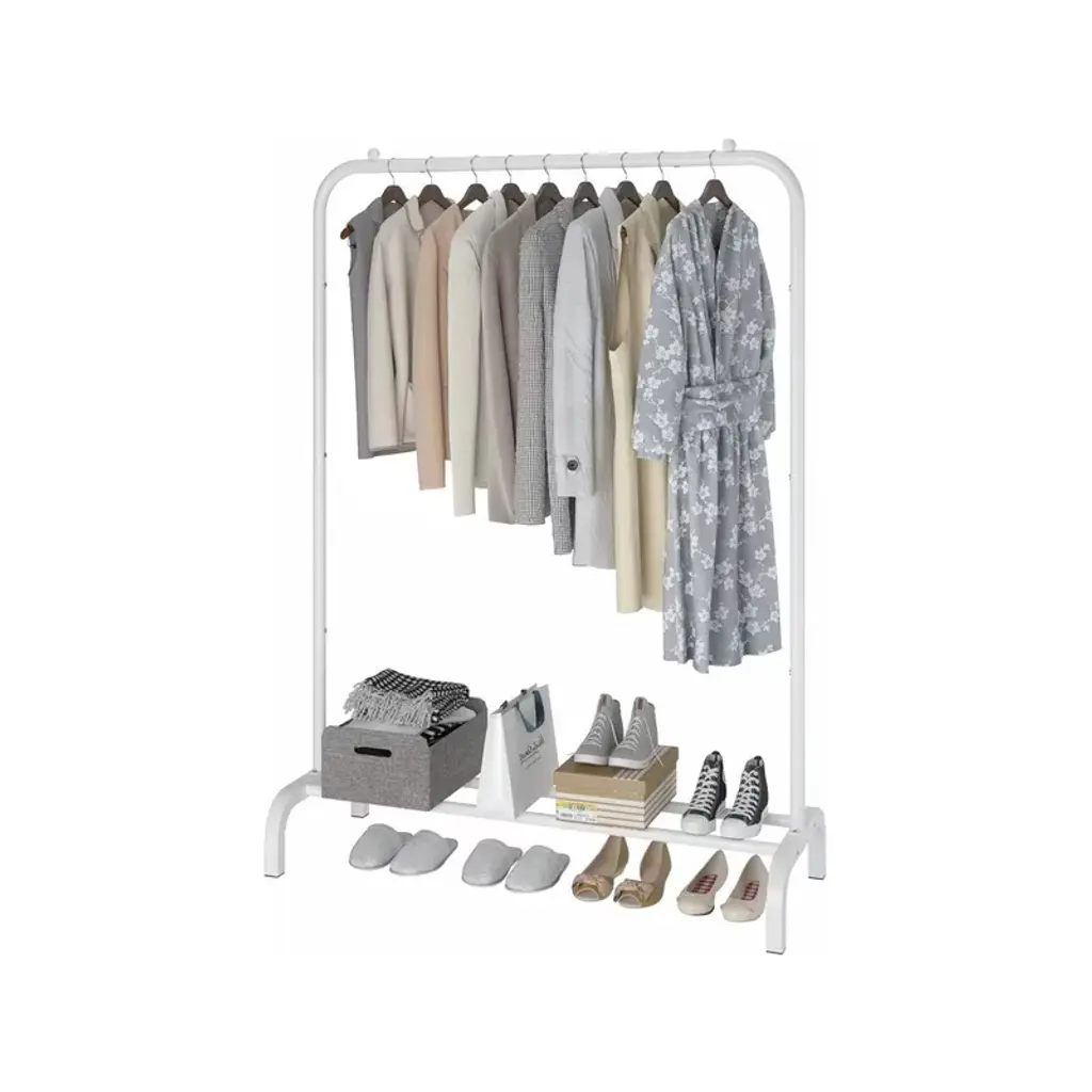 Specifications:Description: There is a long enough hanging rod that gives you the ability to keep all your clothes organized, in case that being scattered all around the room. In order to maximize space utilization, this Heavy Duty Metal Garment Rack Clothes Hanging Rod with Bottom Storage Shelf adopts the wide bottom storage shelf, allowing you to store shoes, bags, hats, and more. The living surrounding is neater, life is happier. Sturdy Metal Structure for Lasting Durability: Characterized by a solid metal structure, the cloth rack shows perfect performance in sturdiness as well as load-bearing capacity. Powder-coated surface makes it not easy to rust, and thus enables longer service time. Meanwhile, its rounded tube causes no harm to your cloth. Exquisite Details Superior to Others: Considering that the hanger may fall from the hanging rod by accident, the garment rack is equipped with an anti-slip stopper on each side, to secure clothes. Besides, the adjustable footpads at the bottom, playing dual roles as protector to prevent the floor from being scratched, and as the base to overcome the uneven floor condition. Modern Style for Wide Range of Use: The garment rack of great practicality brings much more convenience to your daily life. You can display your clothes in the bedroom, to help yourself to decide everyday outfit more conveniently, rather than store them in the cabinet again and again. It is suitable for the living room, dressing room, office as well. Simple Assembly and Easy Maintenance: It is not difficult to find how to put all parts together within minutes, even alone since the rack features an ultra-simple design. Daily maintenance requires less effort, and what you need to do is just wipe the dust off with a soft cloth, super easy clean-up.