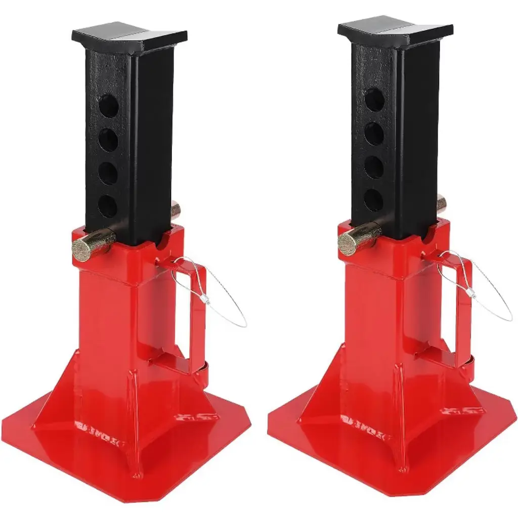 Ensure maximum safety and stability for your automotive and equipment maintenance projects with our professional-grade pin-type jack stands. Engineered for exceptional strength, this pair of jack stands boasts a formidable 12-ton (24,000 lb) and 22-ton (44,000 lb) capacity per pair, providing reliable support for a wide range of vehicles and machinery. With an adjustable height range from 11 inches to 18 inches, they offer the versatility needed for various lifting scenarios.Key Features:Robust and Durable ConstructionBuilt from high-quality, heavy-gauge steel, these jack stands are designed to withstand the rigors of professional use. The entire unit is protected by a durable spray paint finish that resists rust and corrosion, ensuring long-term durability in any garage or workshop environment. A conveniently designed side handle allows for easy positioning and transport, making them as user-friendly as they are strong.Secure Locking System and Large SaddleSafety is paramount. These stands feature a reliable wrought iron self-locking ratchet lever. The mechanism is simple and effective: lift the handle to adjust the height freely, and lower it to engage the automatic lock, securing the stand firmly in place without the need for additional pins or keys. The large, textured saddle provides superior contact and firmly positions the vehicle's lift point, preventing slipping and ensuring the entire setup remains stable and secure under load.Precise and Easy Height AdjustmentGain full control over your working height with the straightforward pin-adjustment system. The support tube is equipped with five precisely spaced pin locations, allowing for quick and easy height adjustments in incremental steps. This design facilitates a secure fit at every level, from 11 to 18 inches, giving you the flexibility to adapt to different vehicles and tasks with confidence.Versatile for a Multitude of ApplicationsIdeal for professional mechanics and serious DIY enthusiasts alike, these jack stands are capable of supporting cars, trucks, SUVs, trailers, ATVs, and industrial equipment. Their robust construction makes them suitable for use in fleet garages, agricultural settings, and construction environments. When not in use, their compact design allows for easy storage in a garage cabinet or vehicle trunk as part of a roadside assistance kit.Available Options to Suit Your NeedsTo match your workshop tools and preferences, these heavy-duty jack stands are available in several high-visibility colors, including Safety Red, Industrial Orange, and Professional Black. For those with different capacity requirements, they are also offered in other rated capacities such as a 6-ton (12,000 lb) and 18-ton (36,000 lb) model per pair, ensuring you find the perfect match for your specific lifting tasks.