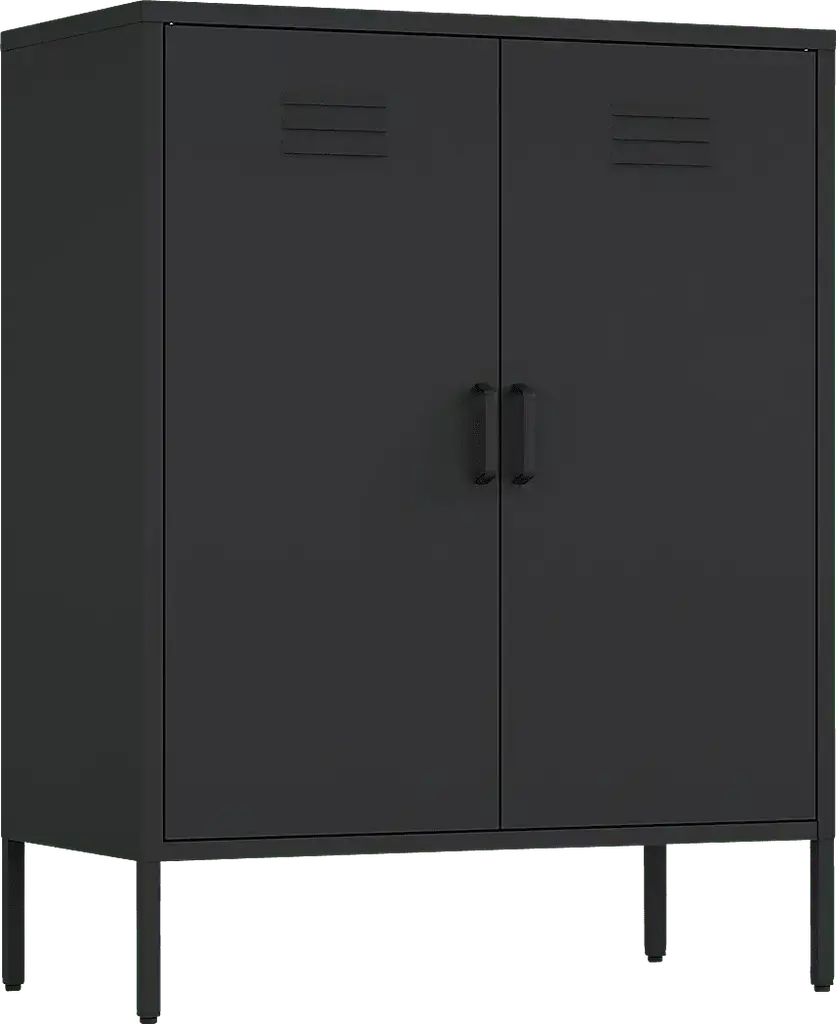The Hebnigan black accent cabinet brings a touch of understated elegance to your home, blending functionality with modern design. Featuring clean lines, versatile storage solutions, and a minimalist aesthetic, each piece is thoughtfully crafted to harmonize with your lifestyle. This piece exudes a sense of calm and order. Let the Hebnigan transform your space into a sanctuary of simplicity and sophistication. Customer assembly is required.