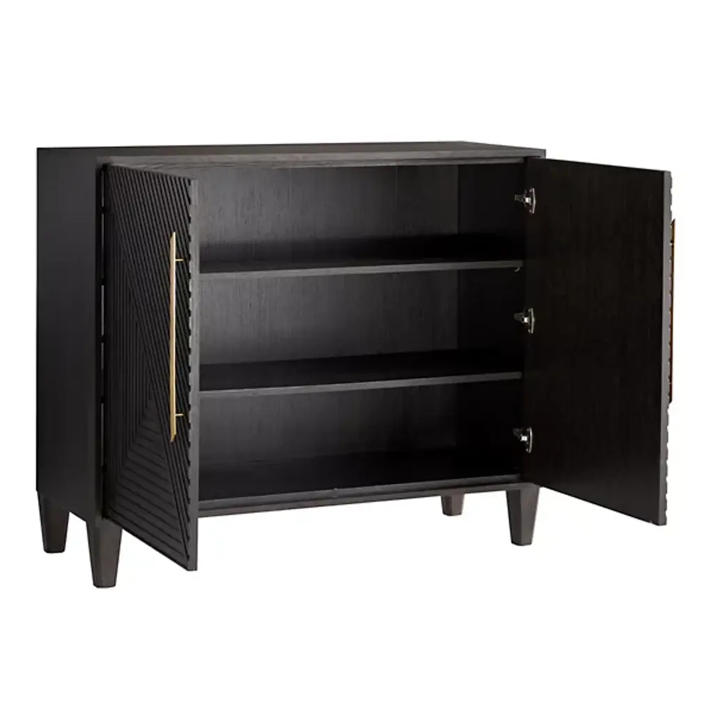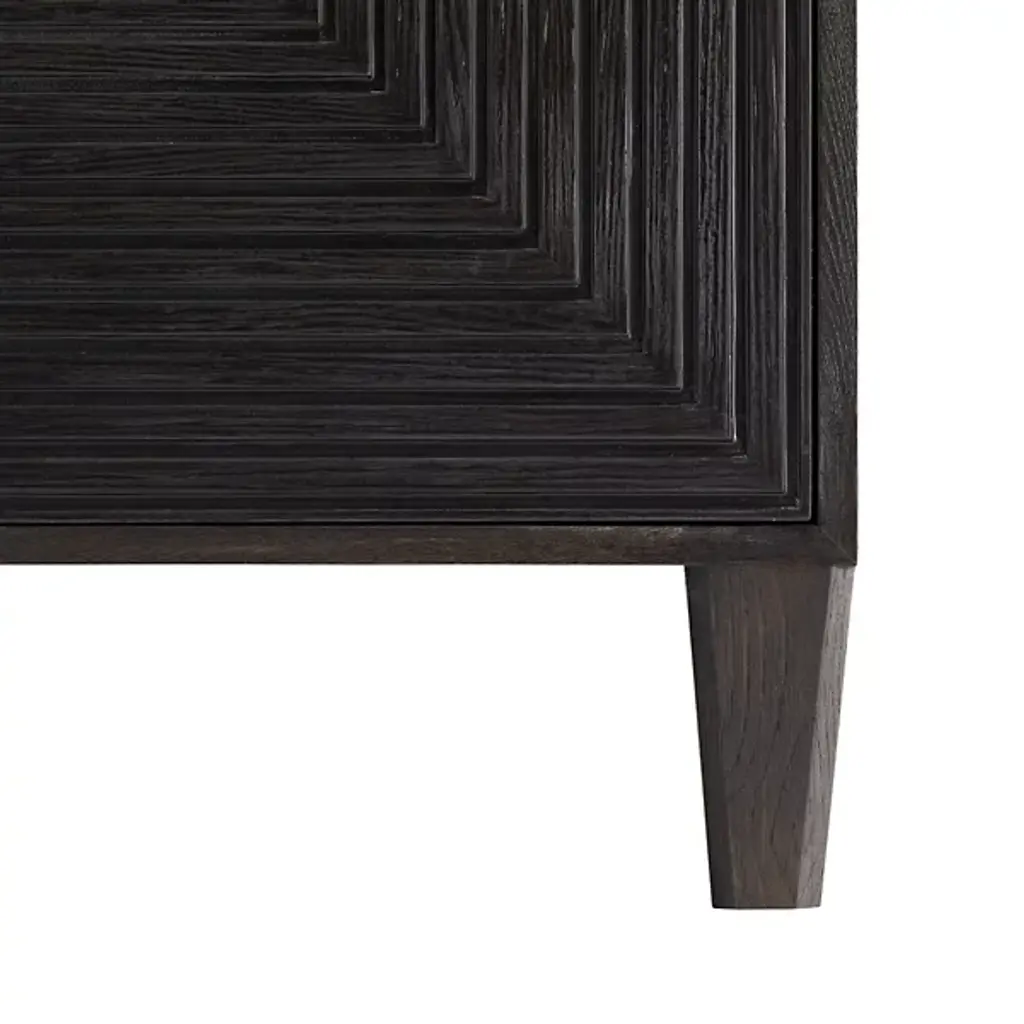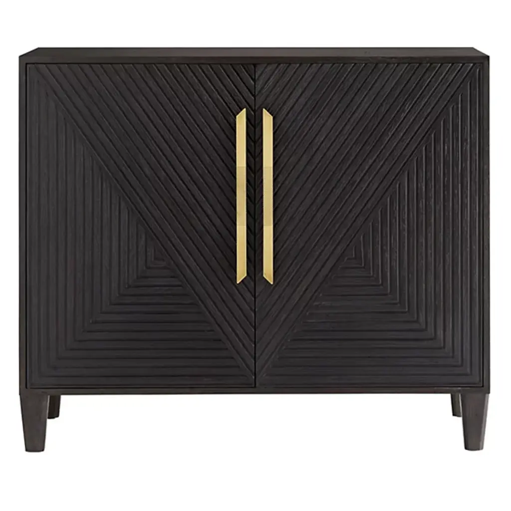 A bold and stylish way to bring new storage and décor options to the rooms of your modern home. The Hendrix Cabinet from Arteriors is made of solid, natural oak, and stands proud on a set of four short legs. Distinct grooves in the surface create an appealing geometric motif, while the antique brass handles act as the perfect accent. Within are three shelves for a variety of uses, and the wide surface is the perfect space for decorative objects.