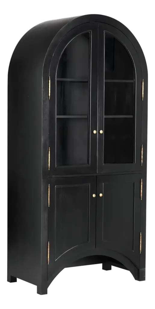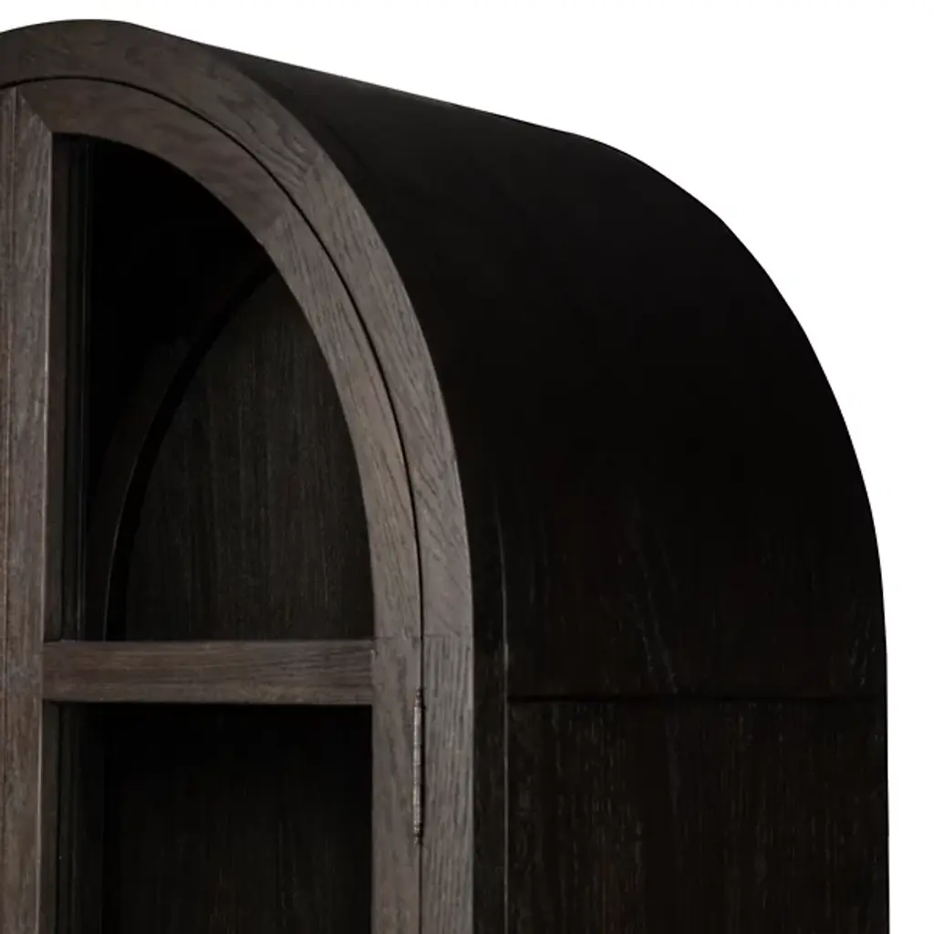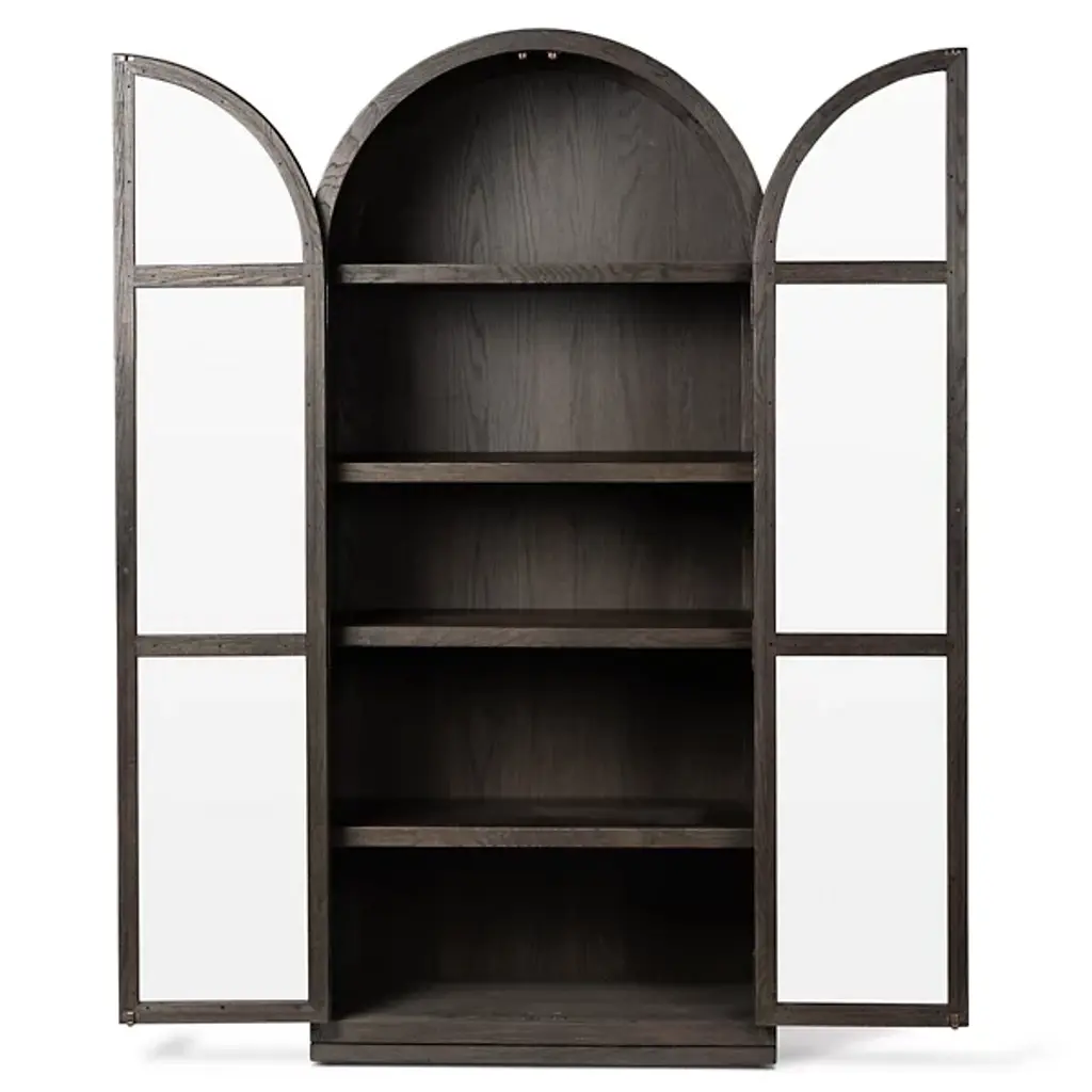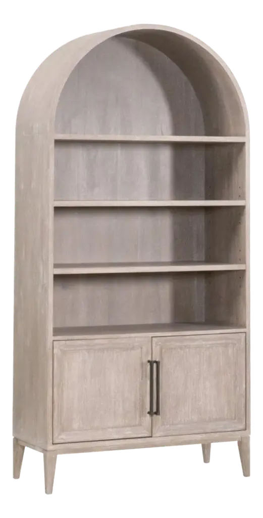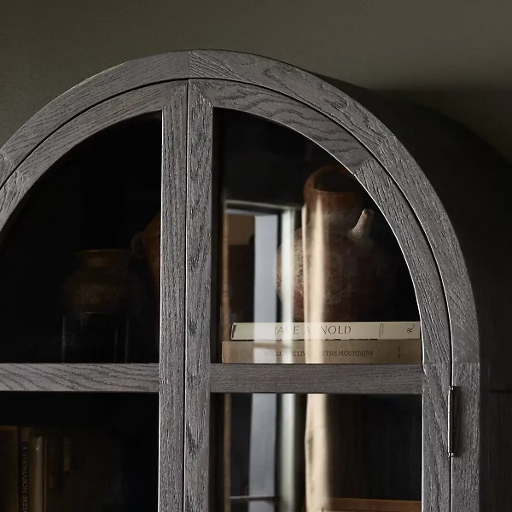 The Hepburn Cabinet from Four Hands makes a statement with its dramatic arched figure and tempered glass doors. The interior shelving provides ample space to display books, artifacts, and personal collections, letting each item tell its own story behind the clear glass panels. The flush plinth base grounds the piece while maintaining its architectural presence. This versatile oak cabinet serves as both a useful storage solution and a personalized display space, inviting onlookers to discover the treasures within while adding character to any room.