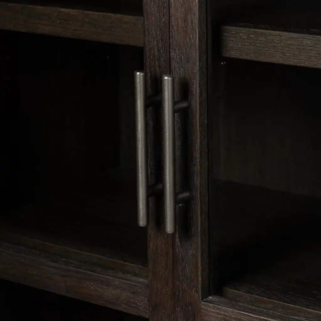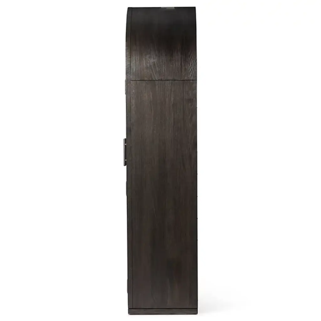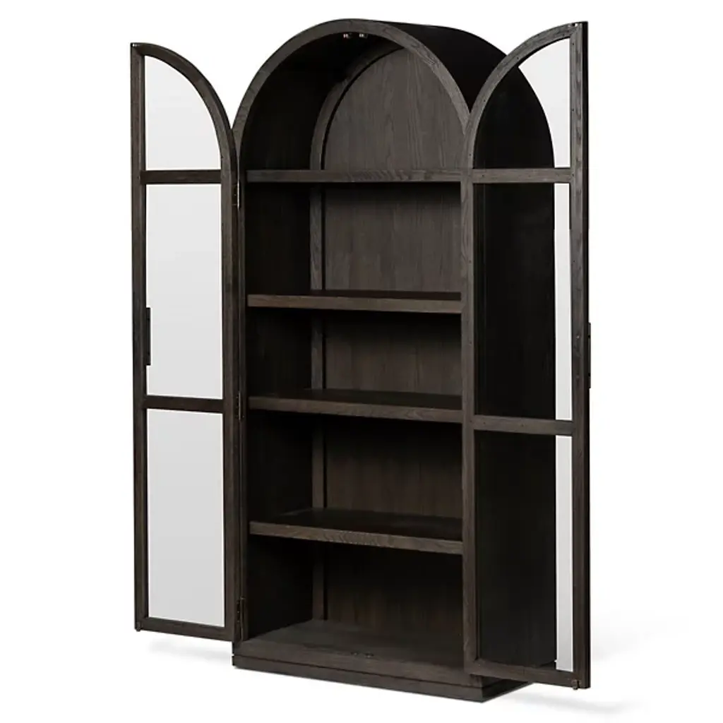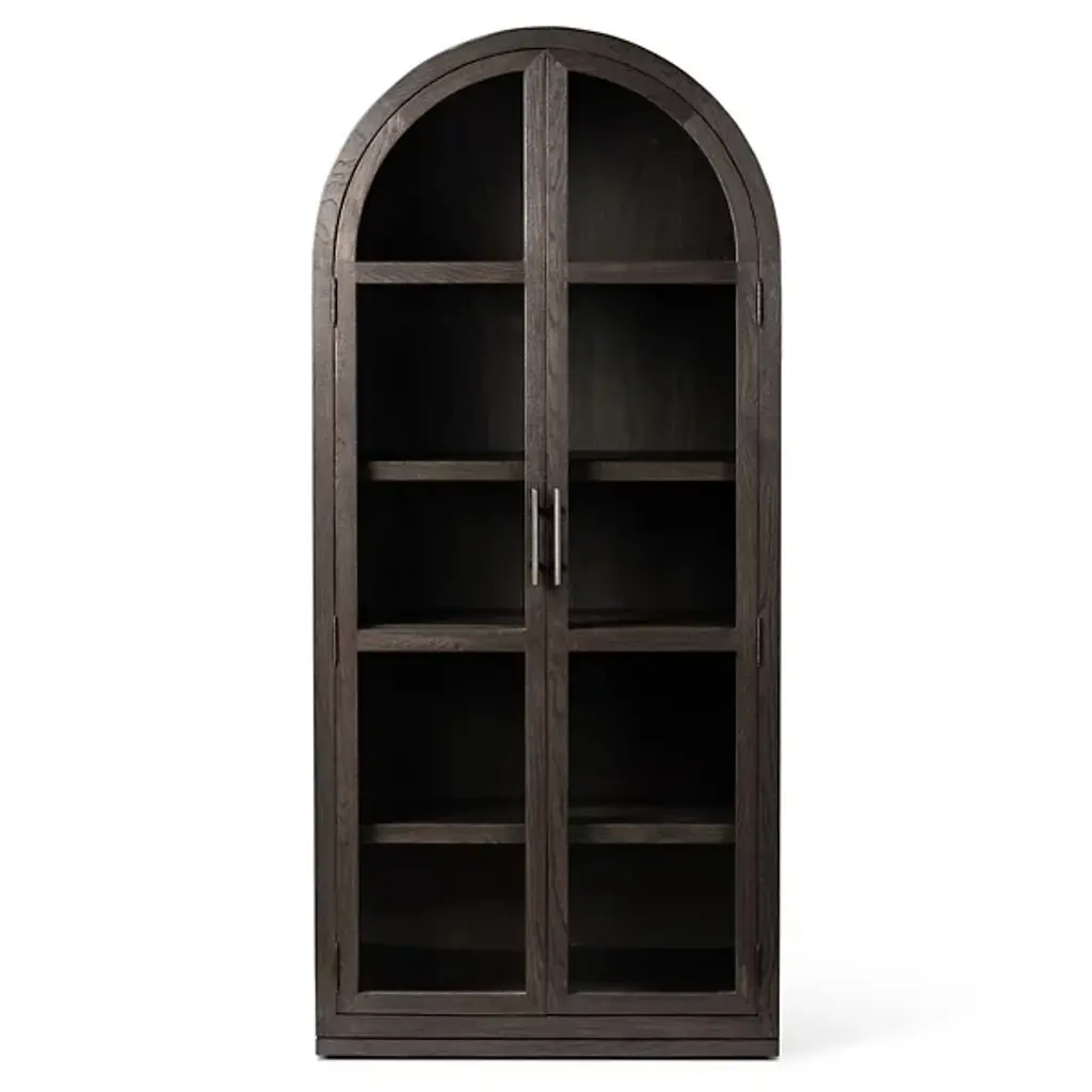 The Hepburn Cabinet from Four Hands makes a statement with its dramatic arched figure and tempered glass doors. The interior shelving provides ample space to display books, artifacts, and personal collections, letting each item tell its own story behind the clear glass panels. The flush plinth base grounds the piece while maintaining its architectural presence. This versatile oak cabinet serves as both a useful storage solution and a personalized display space, inviting onlookers to discover the treasures within while adding character to any room.