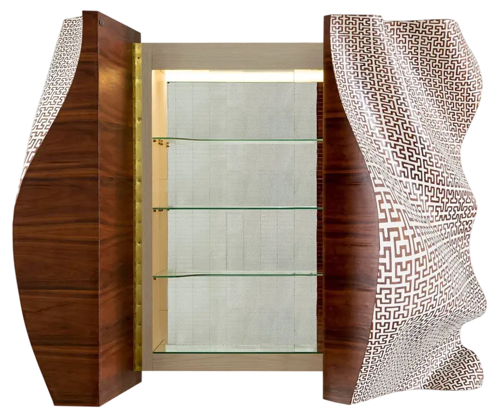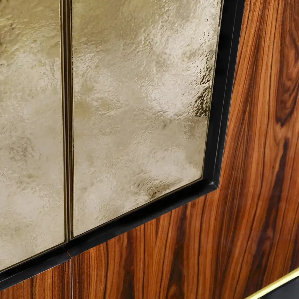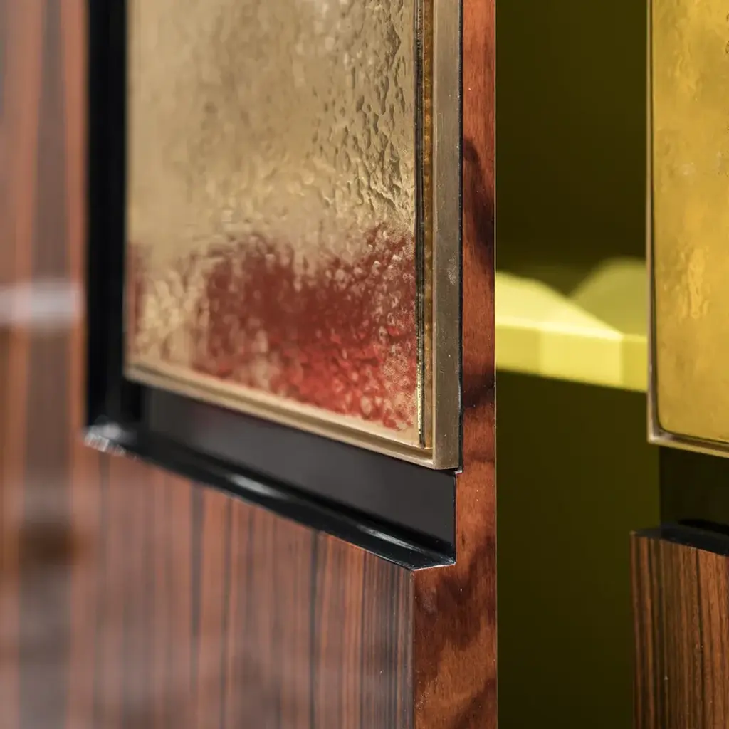 Two doors cabinet with ceramic tiles inserted in a brass frame. Lacquered interior with shelves. Available in different veneers and glazes combinations.Net Weight Kg90MaterialsWood/Glass/Ceramic/Metal/Picture finish02723A N3-M1 ROSEWOOD OPACO + CERAMICA RAY GOLDThe Herbert collection of piece of furniture can be easily positioned in living and dining areas. Can be supplied with different finishes and made to measure. The ceramic elements can be glazed in multiple tones.