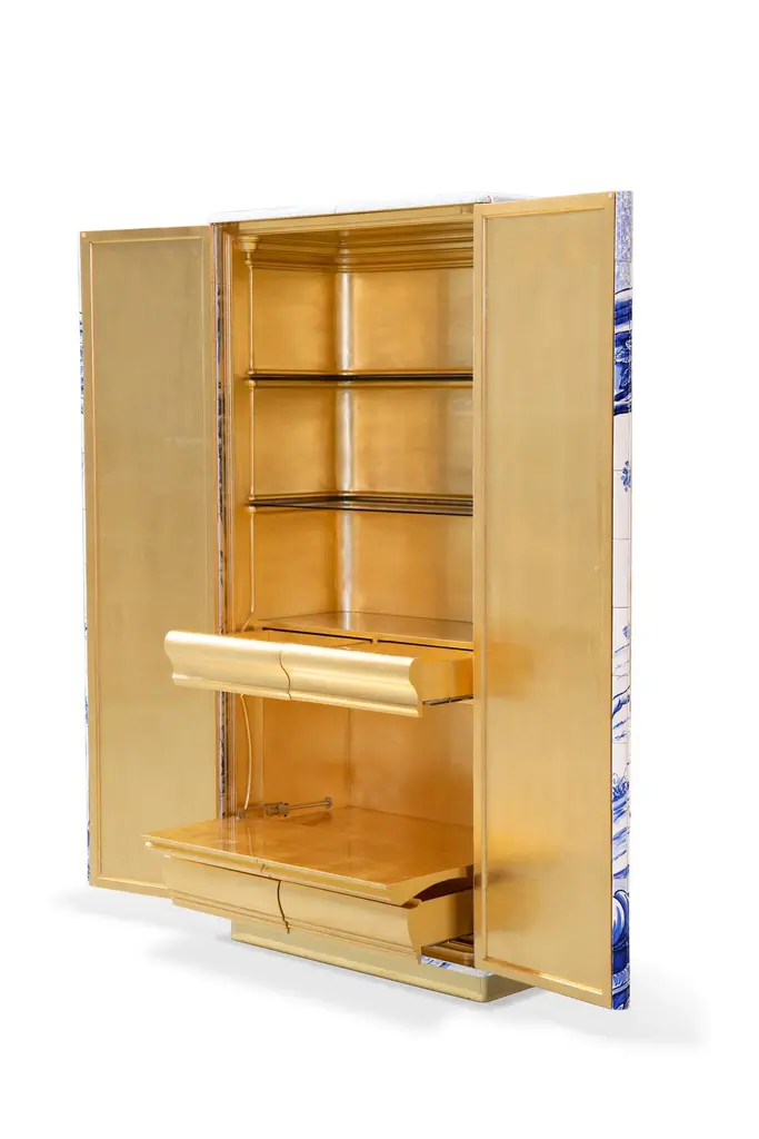 Heritage Cabinet - Hand-Painted Tiles - Gold Plated & Brass - Boca Do Lobo
