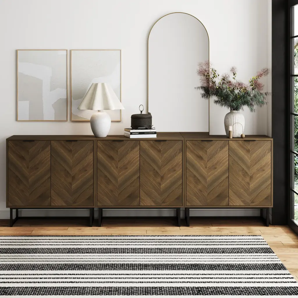 Herringbone Tv Console Credenza Walnut (Set Of 3)