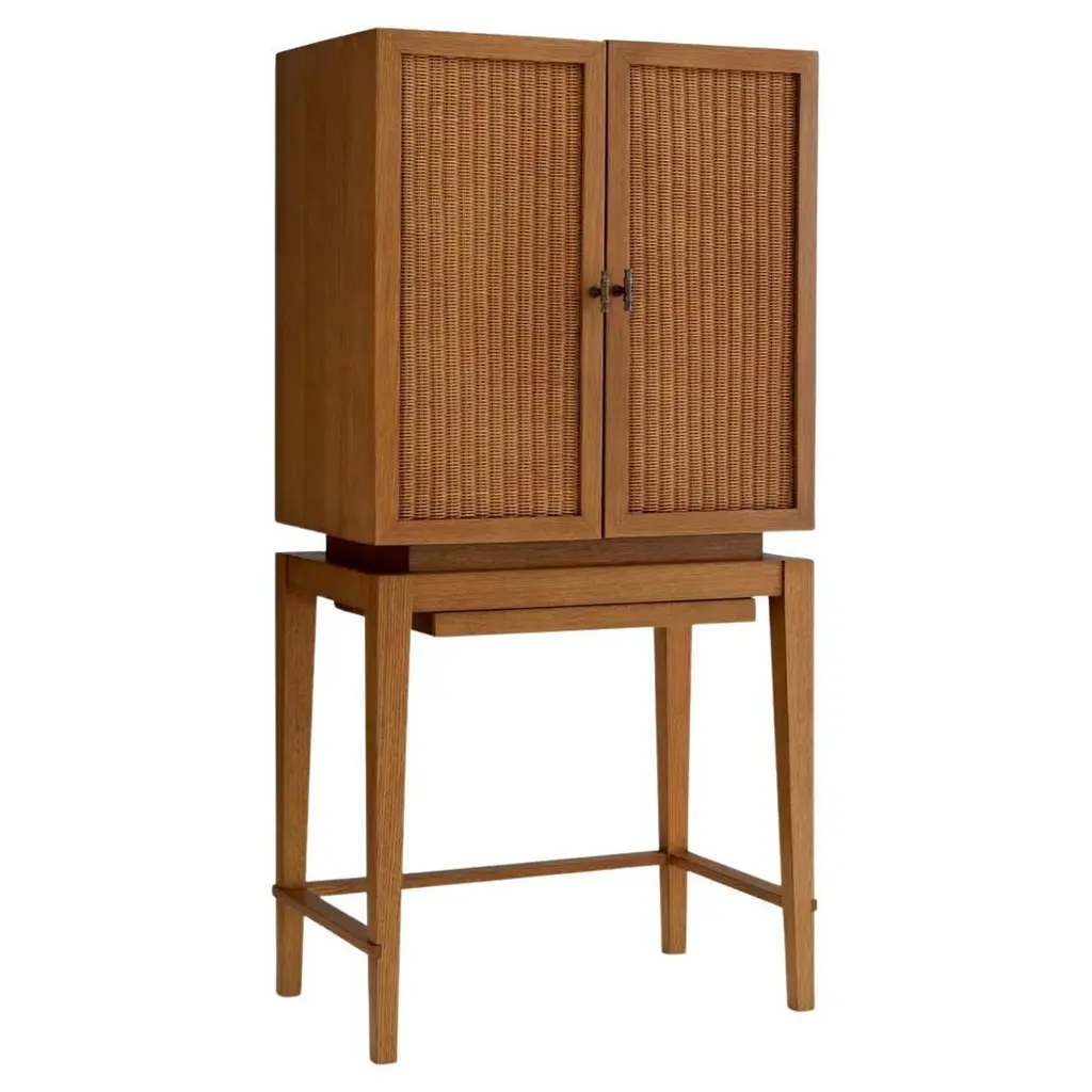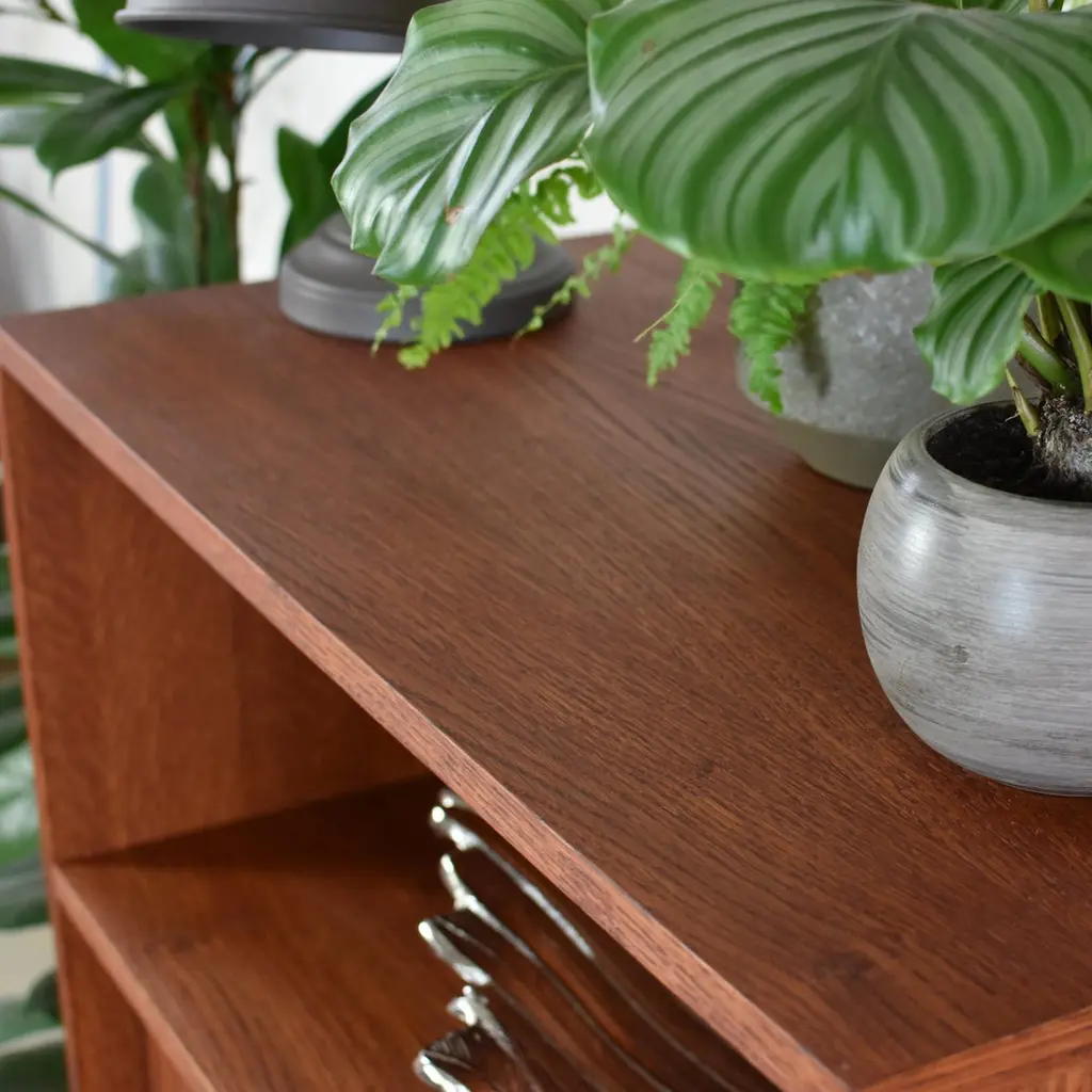 Highboard Medium Cabinet by PastformDimensions: D 40 x W 80 x H 105 cm.Materials: Stained and varnished wood.Available in different wood color finishes: Whiskey, Rum, BPA, Nobel, Brandy, Schwarz, and Natura, Available in three different widths: 70/80/120 cm. Please contact us.You will love this chest of drawers for everything, from its minimalistic shape to its functionality and practicality. This small piece of furniture is surprisingly capacious and has great potential. Depending on your needs and imagination, it can be a part of a living room, bedroom, hall, kitchen, dining room, or children’s room. The open upper part can be used to display albums or decorative dishes. The lower one, with sliding fronts, has been divided into two parts, each with an adjustable shelf.The Highboard chest of drawers was inspired by the furniture popular in the 1950s and 1960s. Characteristic colors, veneer finish, and details such as cylindrical, angled legs, appeal to fans of the aforementioned style.The furniture is entirely made of wood covered with oak veneer. Our furniture is made of only natural materials, so individual models may differ in the arrangement of grain and color. The Highboard Chest of Drawers is finished with stain and varnish.Rooted in a good traditionThe Pastform Furniture studio dates back to the 1990s. Having in mind the idea of a traditional family company, Dawid Gełeta established a carpenter’s shop in 1997. The company specializes in the manual production of utility furniture. Times have changed and with them, fashion has changed. In 2016 we decided to change the direction, following the growing demand for vintage furniture.My name is Mateusz Gełeta, I am the son of the carpenter who founded the company. From an early age, I have watched my dad’s work. He put his whole heart into creating furniture, polishing every detail with his strong hands and making sure that nothing escaped our attention before sending the product to the customer. He made sure that every piece of furniture was perfect and refined. We remain true to these principles.Following the blow, I decided to create a harmonious combination of modern quality with the classic style of the 1960s. This is why I designed and created a unique collection of wonderful furniture, which, in addition to its well-thought-out functionality, also creates a perfect design and composes original arrangements.The golden age of interior designIn the 1960s interiors used to take on a very characteristic touch. All over the world, this style was called a mid-century modern, locally it was simply – retro furniture. Simple, elegant minimalistic form, without unnecessary decorations and splendor. Decorating with the idea of an uncomplicated composition, it allows for an undisturbed selection of the arrangement accessories and emphasizes a high level of functional comfort. One might say – a perfect piece of furniture. Comfortable, hiding surprisingly many items despite quite neat dimensions, made of noble species of wood and created by hand, with a focus on carefully refined details. No wonder its popularity is growing so much.Unique, refined, with a soulEach piece of the Pastform collection represents a unique style. Thoughtful concept of usable comfort, refined details, carefully selected raw materials, and proven accessories. We use only high-quality boards which we veneer with oak, American walnut, and other durable wood species. They are carefully oiled with the best, hard, ecological oil waxes, giving the furniture its final shape. This technology brings out the natural beauty of wood, exposes the grain and unique design of each piece, highlights the beautiful color, and allows to achieve timeless durability.This is how unique, thoughtful, and refined furniture with a soul is created.Thinking about futureWe are trying to positively create the world of which we are a part, contributing to a better tomorrow. We cooperate with local suppliers, support small companies and production plants, care for ecology, and respect the needs of the land. We always strive to establish long-lasting, based-on-trust relationships with customers and contractors.Flexible, with openness and heart on handWe sincerely like what we do. Playing with the shape, structure, and texture of wood is fascinating. Creating new arrangements and coming up with innovations that will meet your expectations. We are proud of our products and we are happy to present you with our collection of refined furniture.All our vintage furniture can be made on request – fulfilling the boldest dreams and fantasies. See our offer and if you want to know more, feel free to contact us. We are waiting for you!