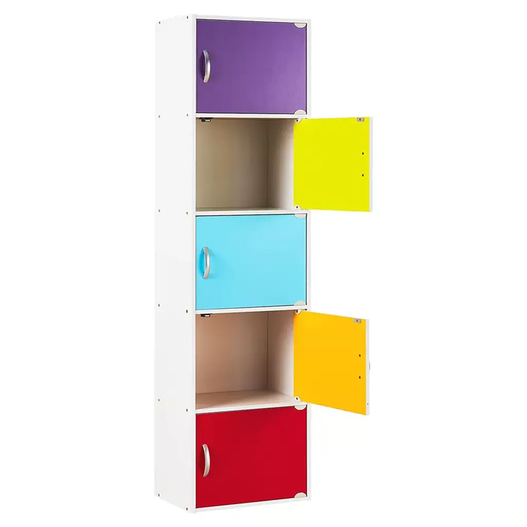 Enhance your organization skills and declutter your home and office spaces with the Hodedah 5-Shelf Enclosed Storage Cabinets. This high-quality piece of furniture features 5 spacious cabinets that are multi-functional and beneficial. Behind the closed doors, you can stock multiple items, including clothes, bags, books, supplies, and more. The large square cubbies allow you to organize a playroom, the kitchen, your bedroom, or outdoor areas. Designed with a sleek, durable beech wood finish, this contemporary bookcase will complement any room you choose to put it in. Measuring 11.75 inches long, 15.9 inches wide, and 59 inches tall, you can maximize the space of a room by placing this slim bookcase in corners or limited space areas. With all the manual hardware tools included, this bookshelf will be easy to assemble within minutes. Enjoy clean and organized spaces by adding the 5-Shelf Enclosed Storage Cabinets from Hodedah to your home and office.