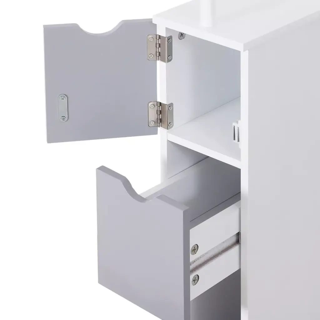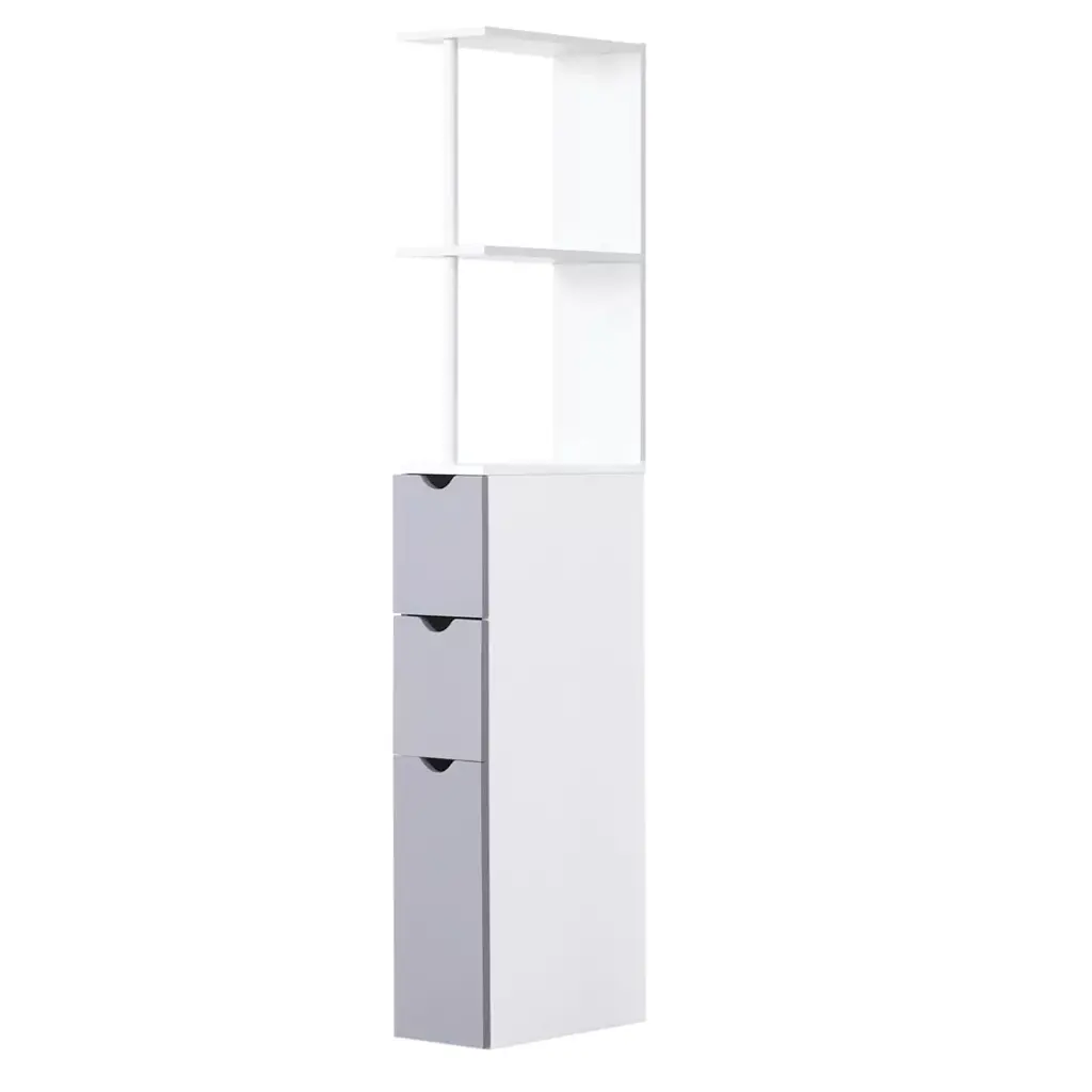 Homcom 54" Tall Bathroom Storage Cabinet, Freestanding Linen Tower With 2-tier Shelf And Drawers, Narrow Side Floor Organizer, Grey And White