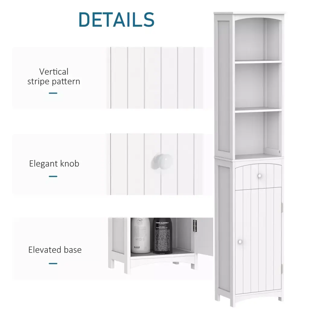 Homcom 67" Tall Bathroom Storage Cabinet, Freestanding Linen Tower With 3-tier Shelf, Drawer And Cupboard, Narrow Side Floor Organizer, White