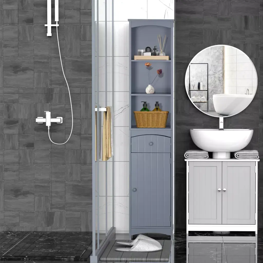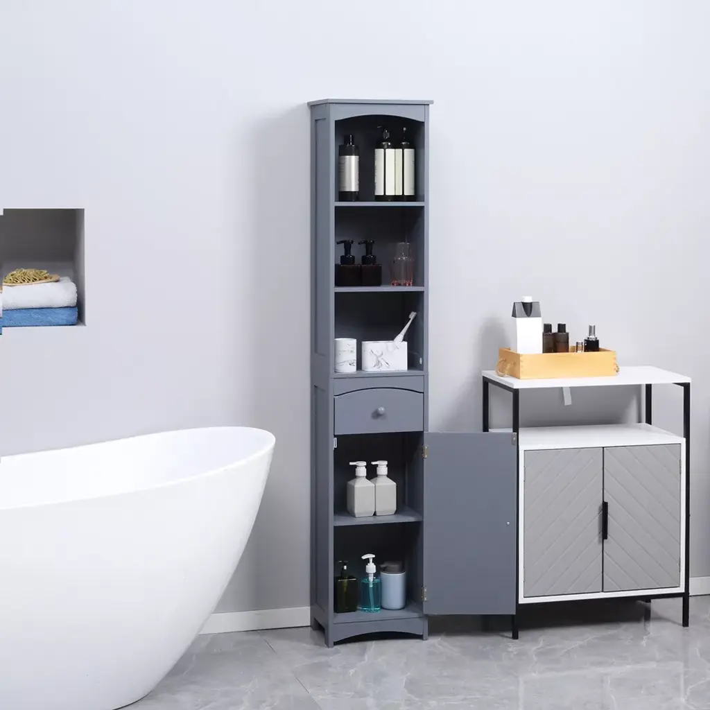 Homcom Bathroom Storage Cabinet, Free Standing Bath Storage Unit, Tall Linen Tower With 3-tier Shelves And Drawer, Gray