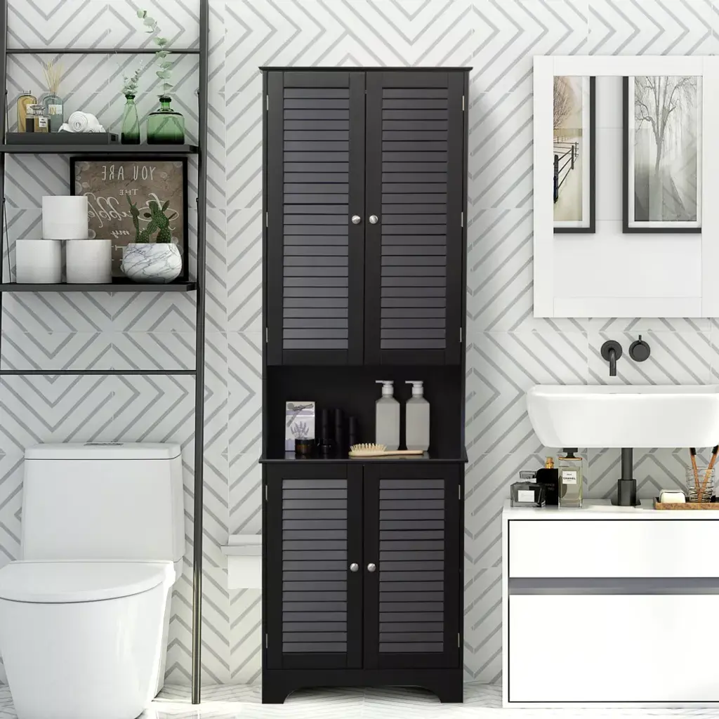 This superb contemporary design is beautifully handcrafted with solid MDF and a water-protective finish that keeps the structure strong against shower splashes. Extra countertop space and height-adjustable shelves accommodate storage needs, while the unit perfectly fits in narrow, tight spots due to its slim shape. The bathroom shelving can easily become a kitchen pantry if you move homes or remodel your house and change things up. Get an upgrade in convenience with HOMCOM.