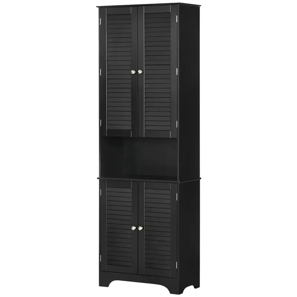 Homcom Tall Narrow Bathroom Storage Cabinet With Doors And Shelf Adjustability, Freestanding Bathroom Linen Cabinet, Bathroom Floor Cabinet, Black