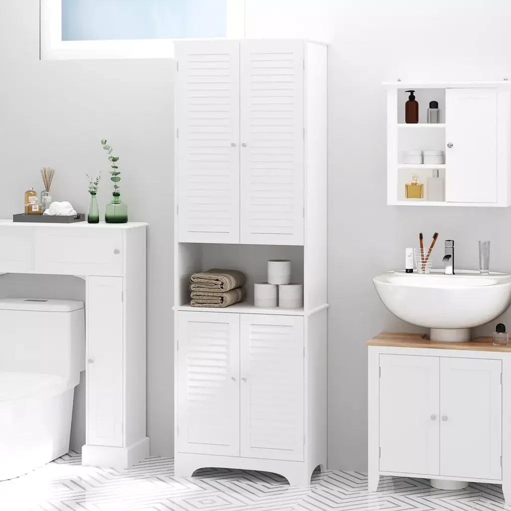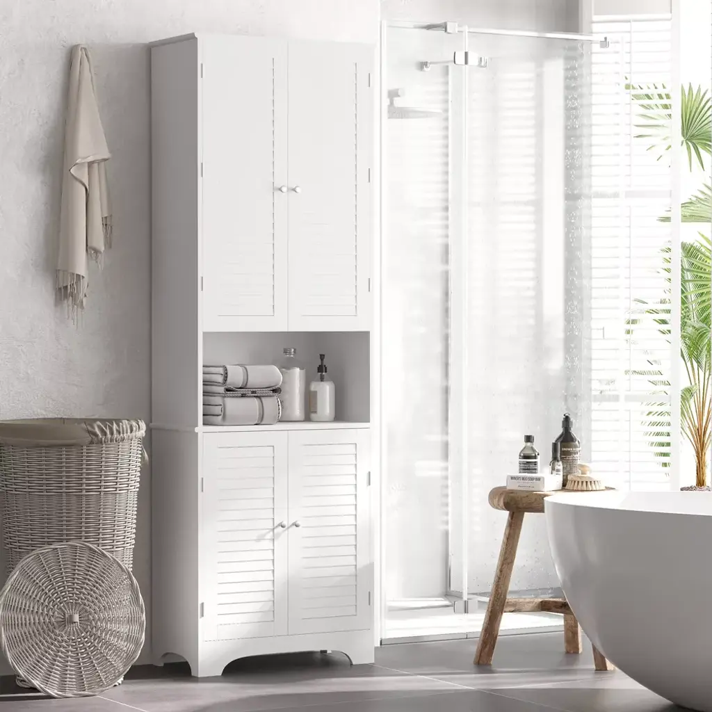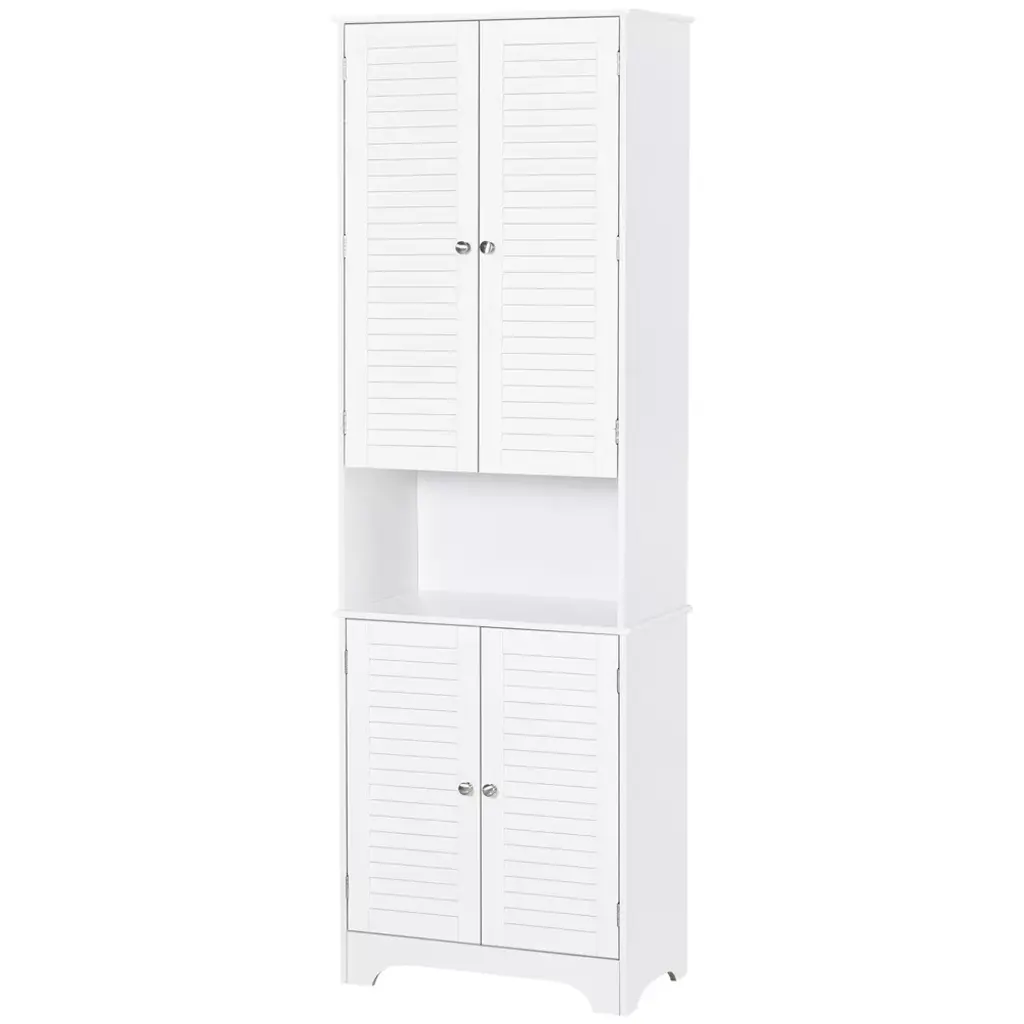 This superb contemporary design is beautifully handcrafted with solid MDF and a water-protective finish that keeps the structure strong against shower splashes. Extra countertop space and height-adjustable shelves accommodate storage needs, while the unit perfectly fits in narrow, tight spots due to its slim shape. The bathroom shelving can easily become a kitchen pantry if you move homes or remodel your house and change things up. Get an upgrade in convenience with HOMCOM.