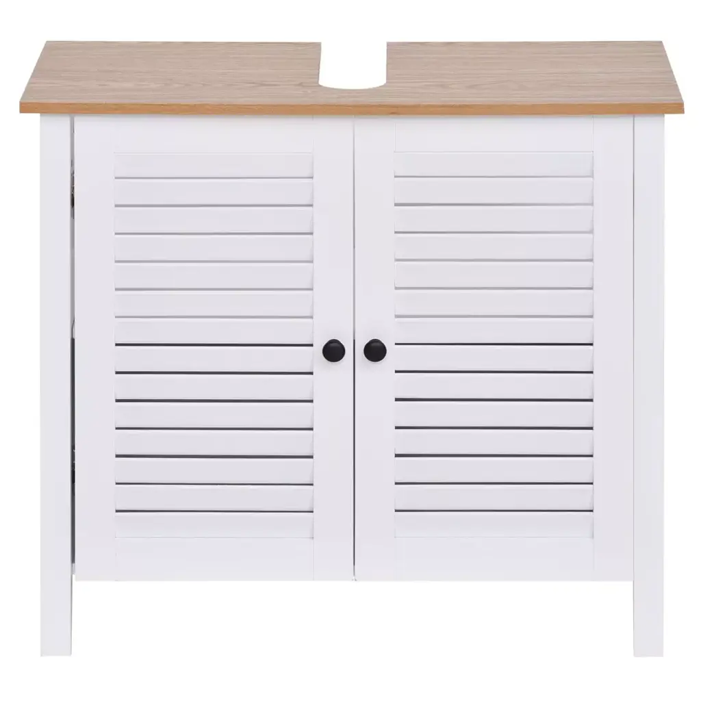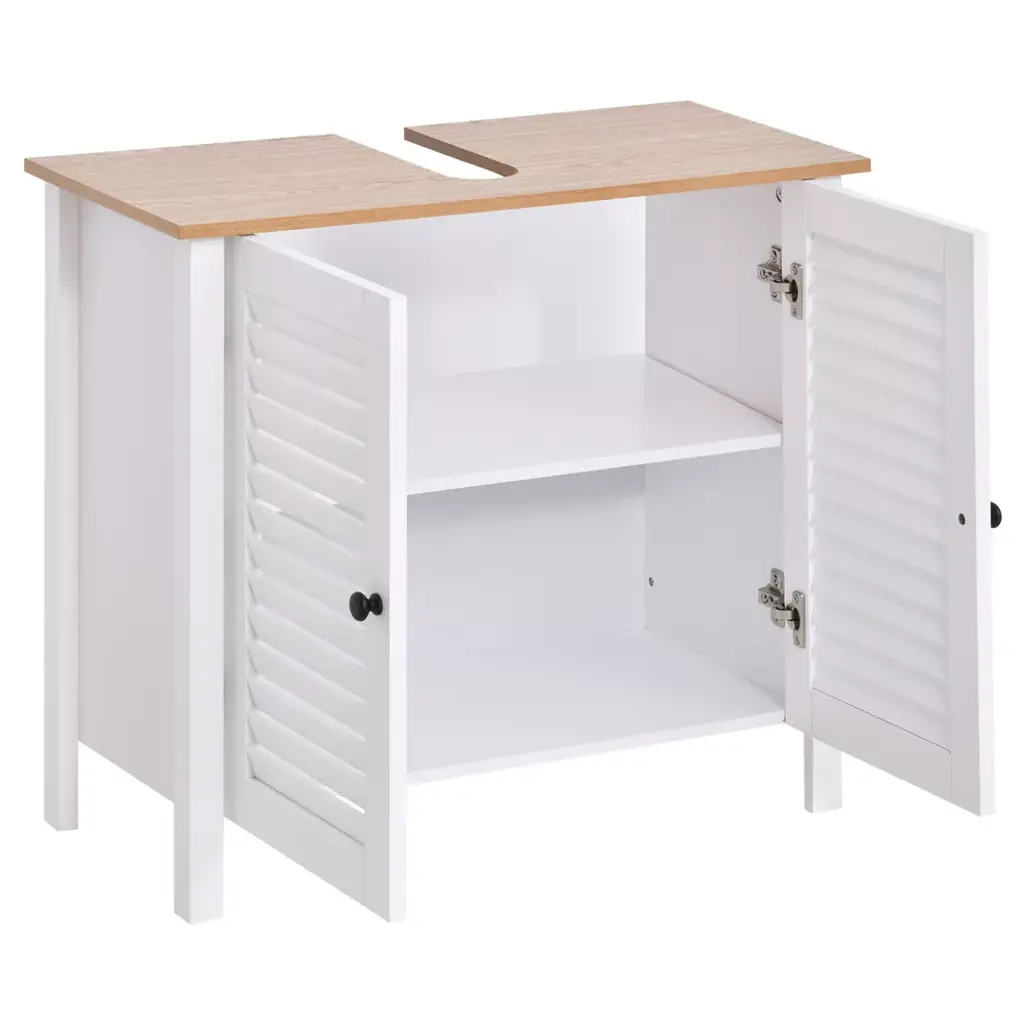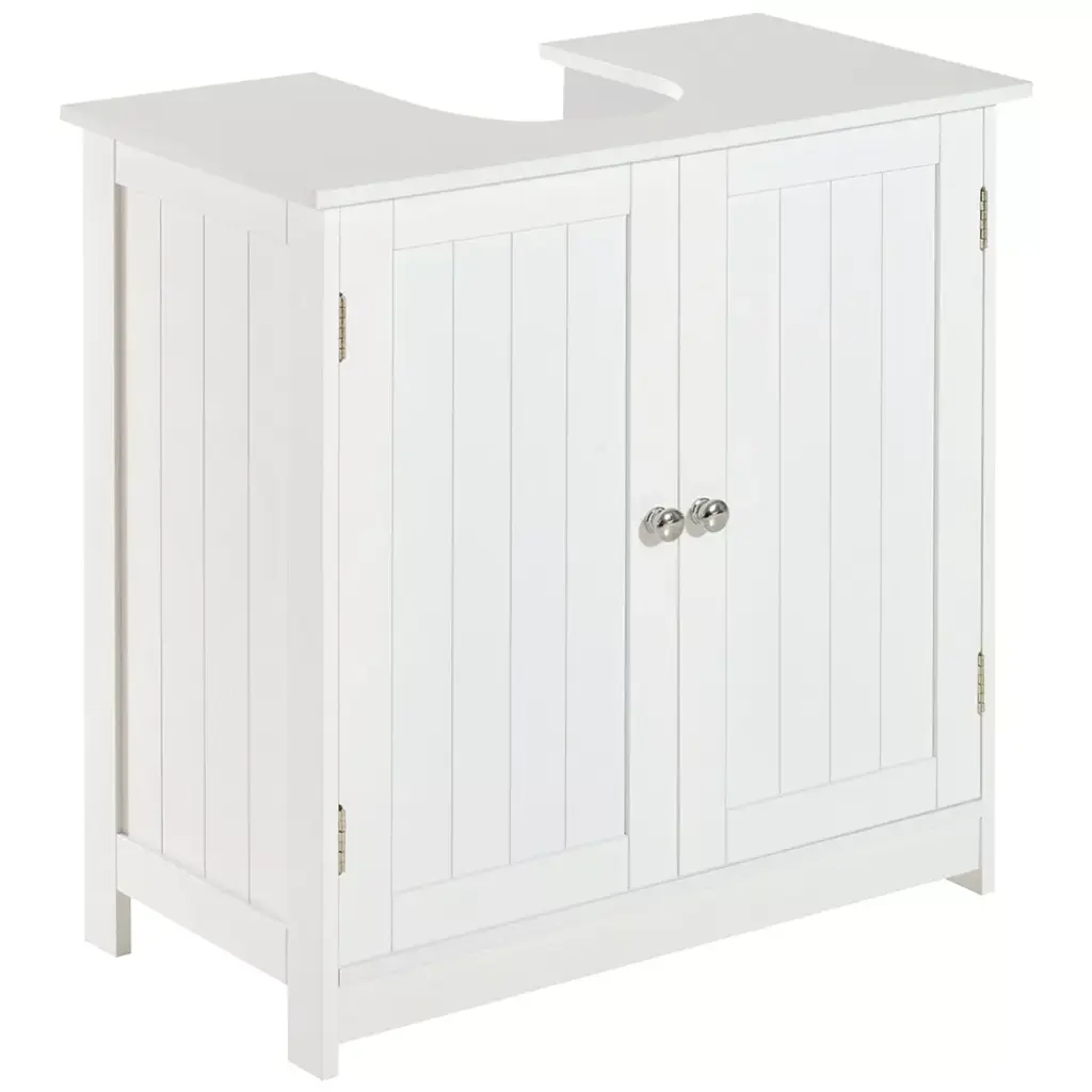 Maximizing space in your bathroom has never been easier, thanks to this undersink storage for bathroom cabinet from HOMCOM. An elegant styling and white color give it an easy and versatile feel which blends into the room with ease. It's made from an MDF board for supreme strength, with the 'U' cut out allowing it to slot in snuggly around your sink and pipes. The two-layer shelves cater to your various storage need. Just worth your purchase!