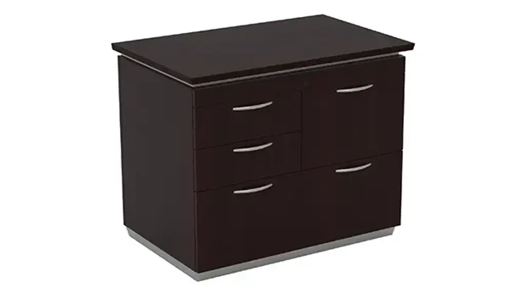 Tayo collection laminate office furniture series has durable laminate finish and silver edge reveal to add style. Combo Credenza has a storage cabinet and lateral file below the 72" top providing lots of storage and filing space. Storage cabinet has an adjustable shelf. Multi-file has a two full width file drawers. Ships ready for easy assembly.