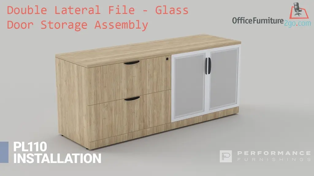 Combo Storage / Lateral Credenza with durable laminate finish. 2 Drawer Lateral Cabinet accommodates letter or legal size files. Drawers lock for security. 2 Glass Doors Storage Cabinet with tempered glass silver frame. Top fits on top of the 2 cabinets. Choose from several finishes. Overall Dimensions: 72" W x 22" D. Lateral Cabinet Dimensions: 36" W x 22" D x 30" H. 2 Door Storage Cabinet Dimensions: 36" W x 22" D x 30"H. Top Dimensions: 72" W x 22" D. Ships ready for easy assembly. Glass Door Storage and Lateral File Combo Assembly Video