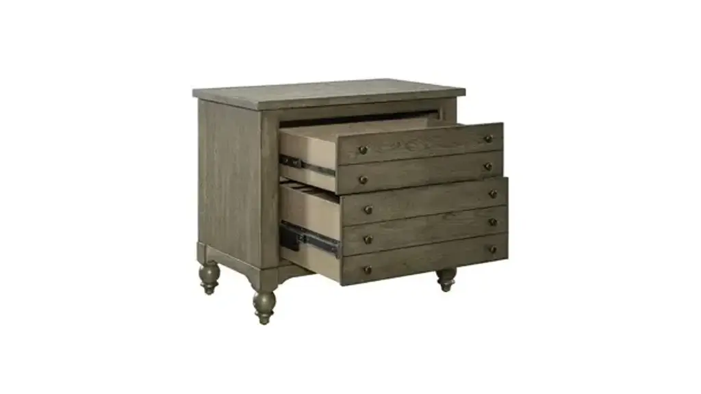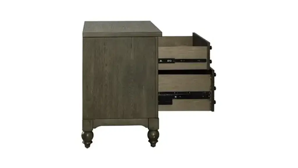 Be distinctively different with the Americana Farmhouse Lateral File Cabinet. French and English Dovetail Construction. Crafted with excellence using poplar solids and white oak veneers, this piece features a Wire-Brushed Dusty Taupe finish. There are two full extension drawers including a file storage drawer. Bluff-cut drawer fronts give the illusion of multiple smaller drawers while still offering deep storage. The drawers are accented with Antique Brass knob hardware. Show off your craftsman's flair with the Americana Farmhouse lateral file cabinet. Overall Dimensions; 37" W x 22" D x 32" H. Ships ready for easy setup.