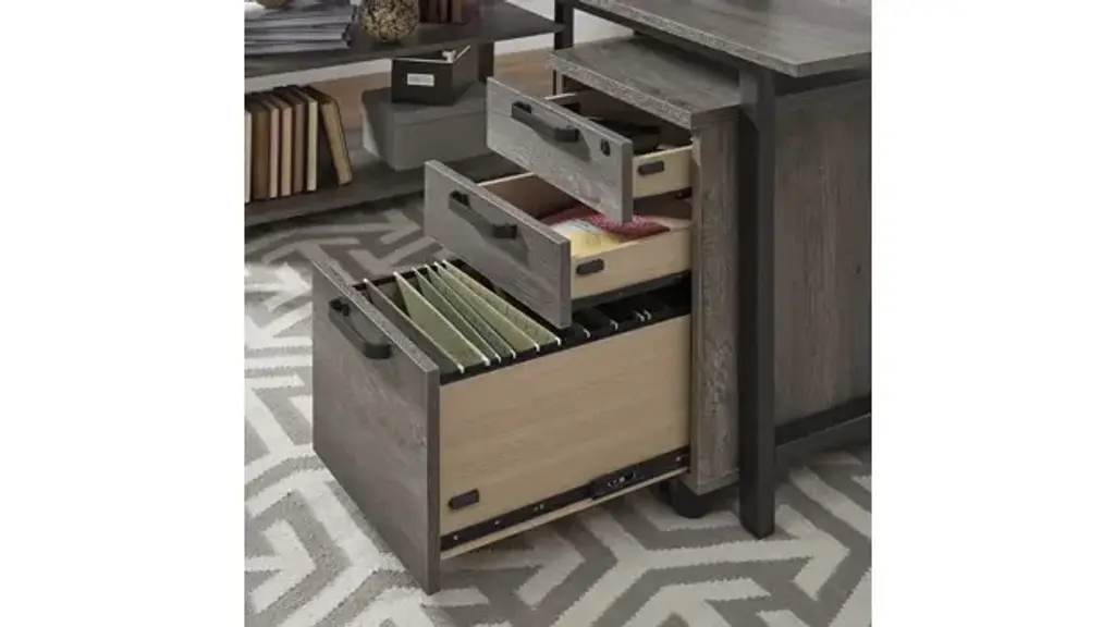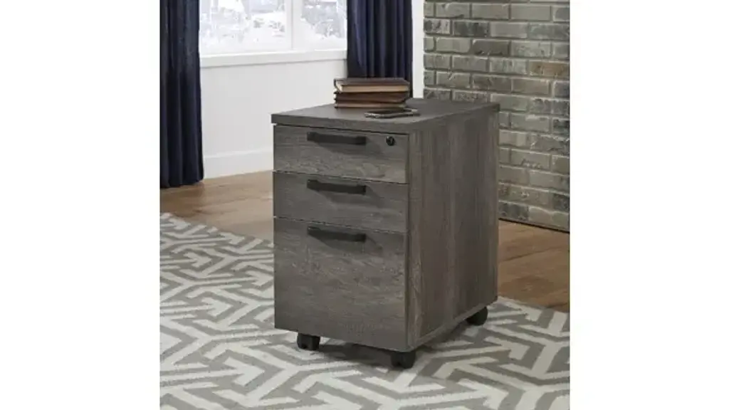 Enhance your office with the Tanners Creek Mobile File Cabinet. English Dovetail Construction. Crafted of a rubberwood solid frame and melamine, this piece features a Greystone finish, and is accented by dark pewter bar pull hardware. Three full extension drawers for easy access to storage, casters making moving a breeze, bottom lateral file drawer, locking file drawer to keep confidential documents secure. The melamine is scratch resistant, making this piece sure to last in any home. Tanners Creek offers a natural feeling created by the living space as well as the furnishings that attribute to it. Overall Dimensions: 15.75" W x 22.5" D x 25.13" H. Top/Middle Drawer 12" W x 15" D x 3" H. Bottom Drawer 12" W x 15" D x 9" H. Ships ready for easy setup.