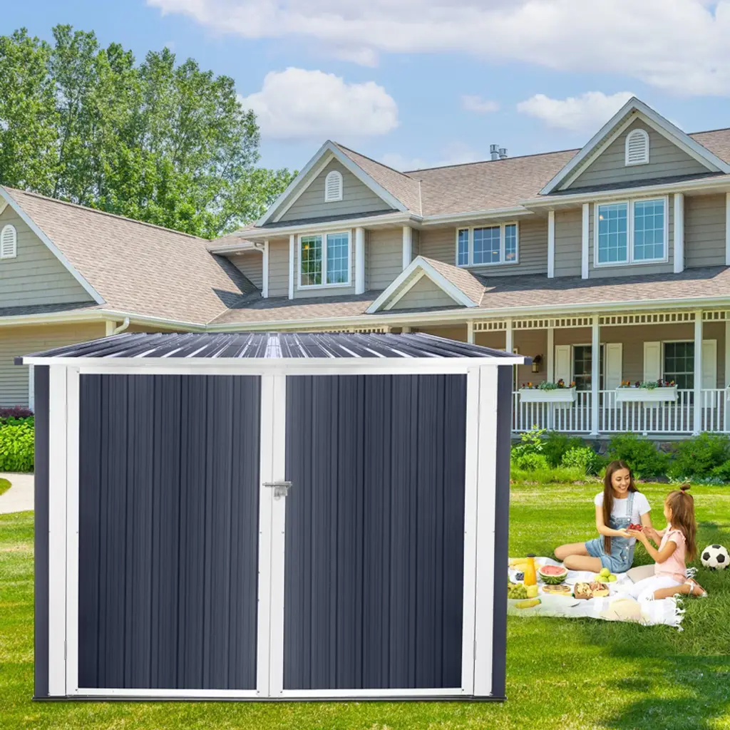 This heavy-duty outdoor storage cabinet is rust, rot, fire, and water resistant.Shed with Dedicated Bike Storage: This low-profile outdoor storage shed accommodates 4 bikes. The perfect outdoor shed for outside sports equipment and anything else you need to store.Efficient Design: The outdoor shed includes 4 adjustable bike tracks to store most bicycles and keep the shed stable and secure.Strong and Durable Outdoor Storage Shed: This outside storage backyard shed is made of galvanized steel that is built to last outside year round for seasons to come.