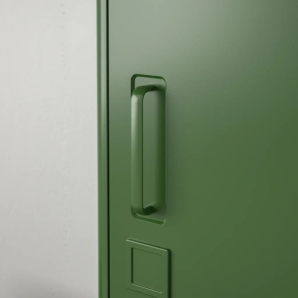 IDÅSEN High cabinet with drawer and doors - dark green 17 3/4x67 3/4 ". 10-year Warranty. Read about the terms in the warranty brochure. You can attach magnets to the metal surface and use it as a pin board. Integrated damper makes doors close silently and gently.