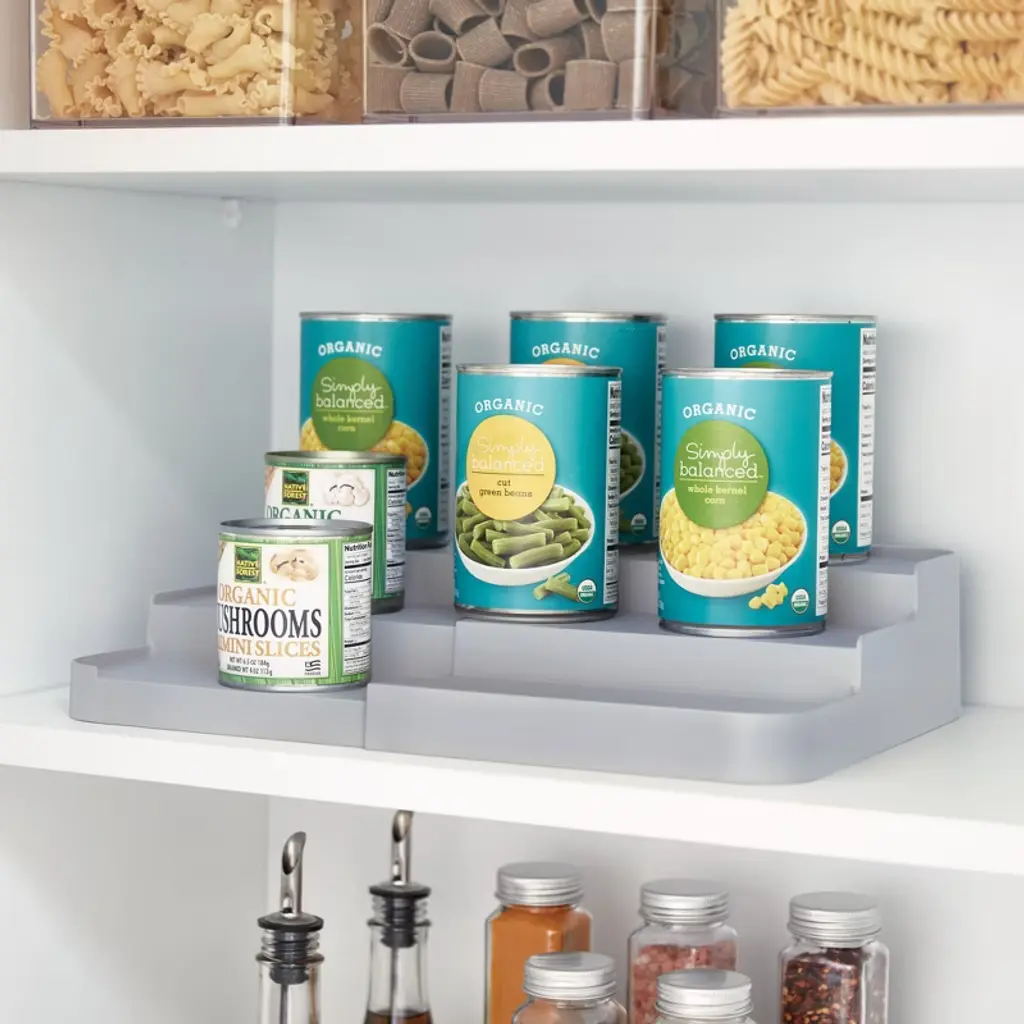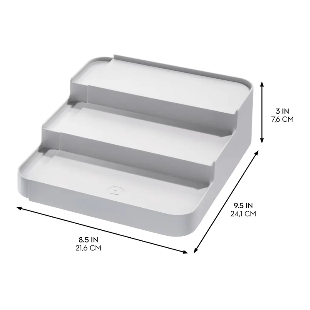 The iDesign Expandable Spice Rack keeps your favorite herbs accessible by creating a better vantage point inside cabinets. This innovative design fits neatly into cabinet corners to instantly maximize space. Three generously sized shelves make it easy to grab what you need, and the slightly raised edges prevent items from falling. The expandable design slides to fit your exact storage needs and creates more storage space for seasonings and canned goods. This rack pulls double duty by sorting vitamins and medicine bottles in bathrooms. With iDesign, you can live simply every day.