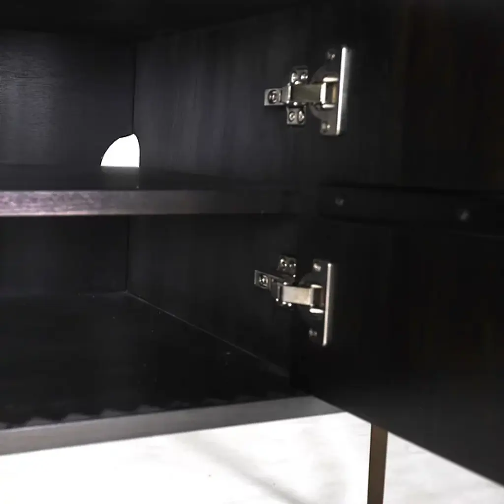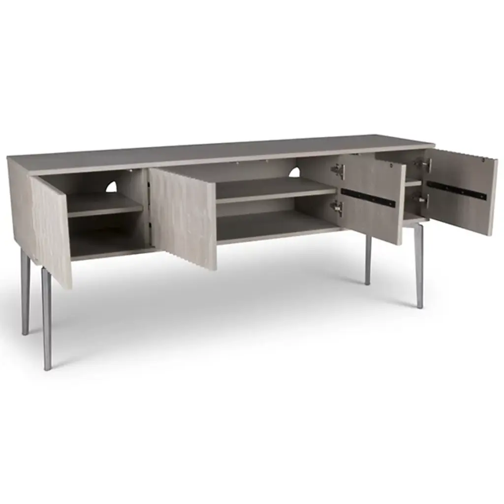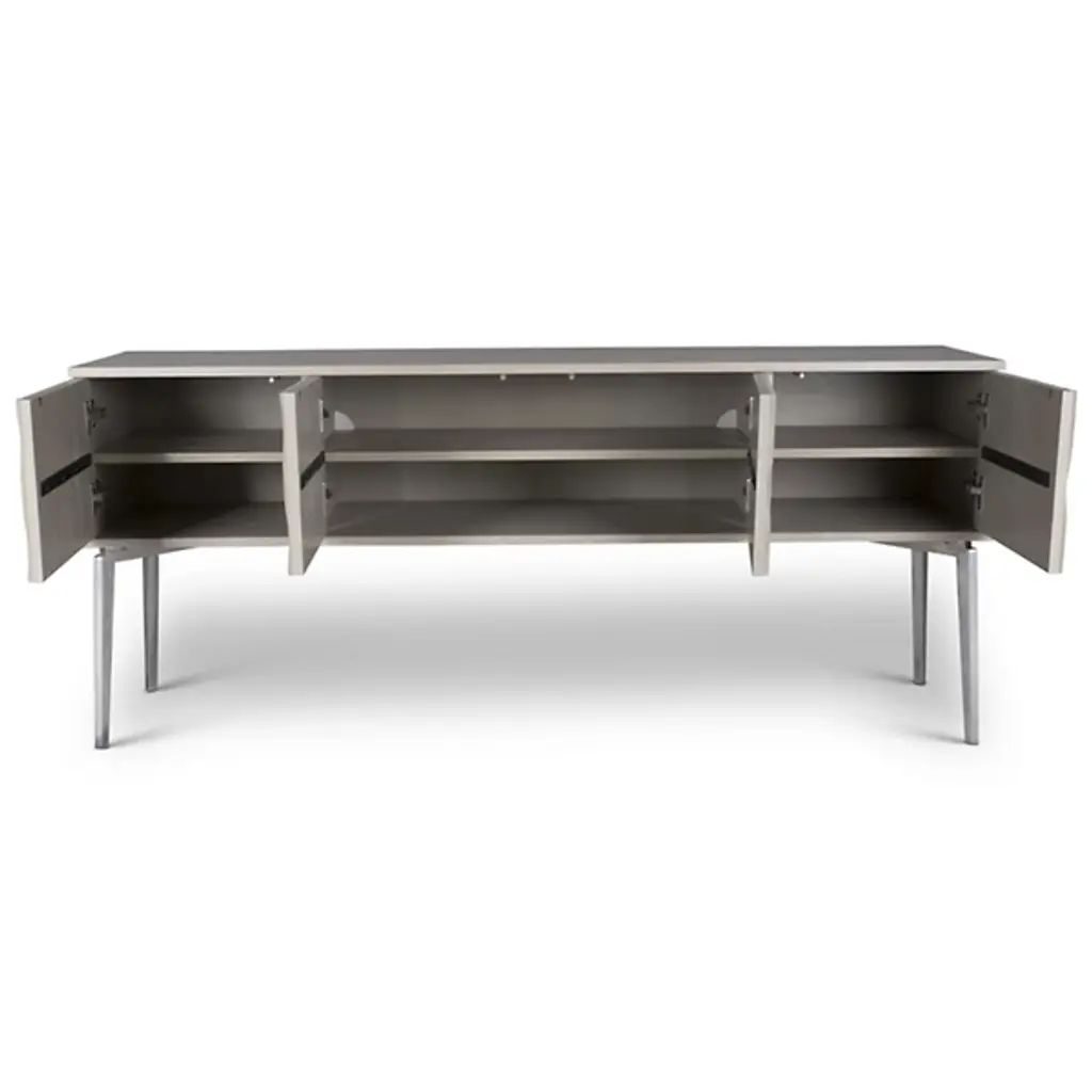 Made from durable materials such as solid mindi wood, mindi veneer, engineered wood, and cast aluminum, the Urbia IE Series Olas Buffet is a high-quality piece of furniture that’s sure to add functionality and style to your home. This sideboard buffet features intricate carvings on the front of the unit, four cabinet doors, and three adjustable shelves so you can customize your storage needs. Enhance your dining or living space with this functional and contemporary piece.