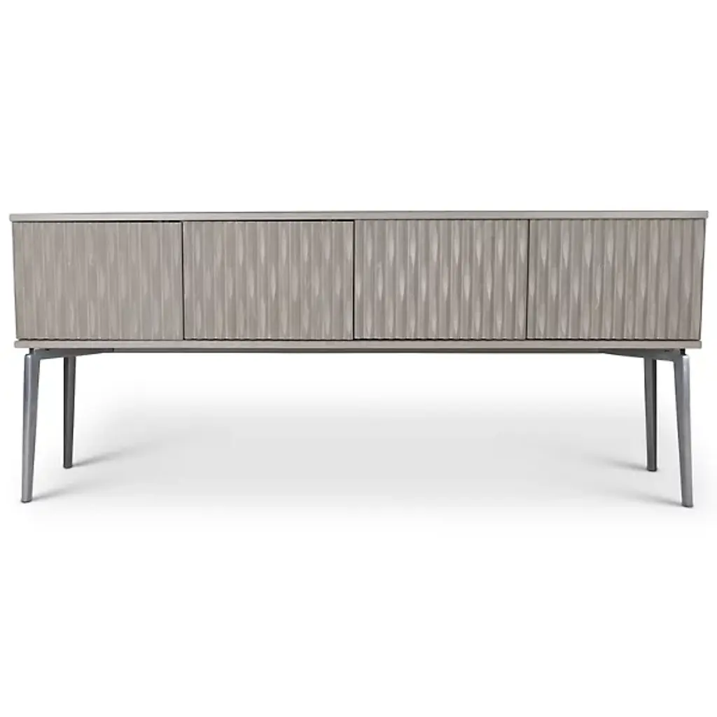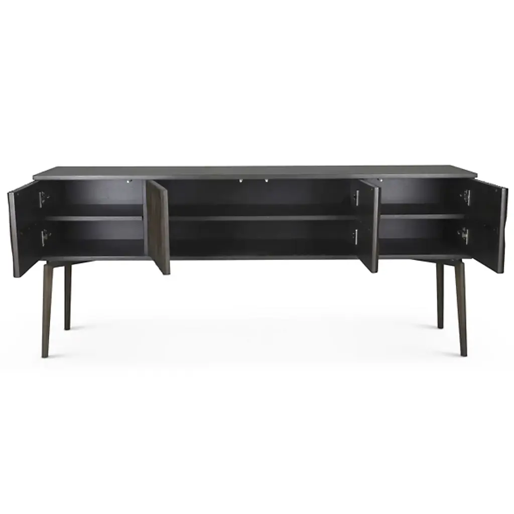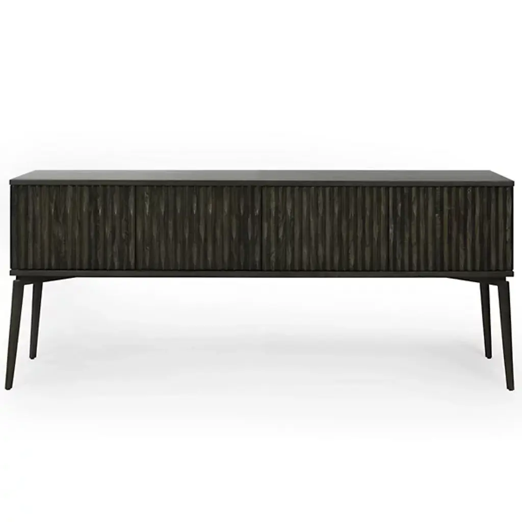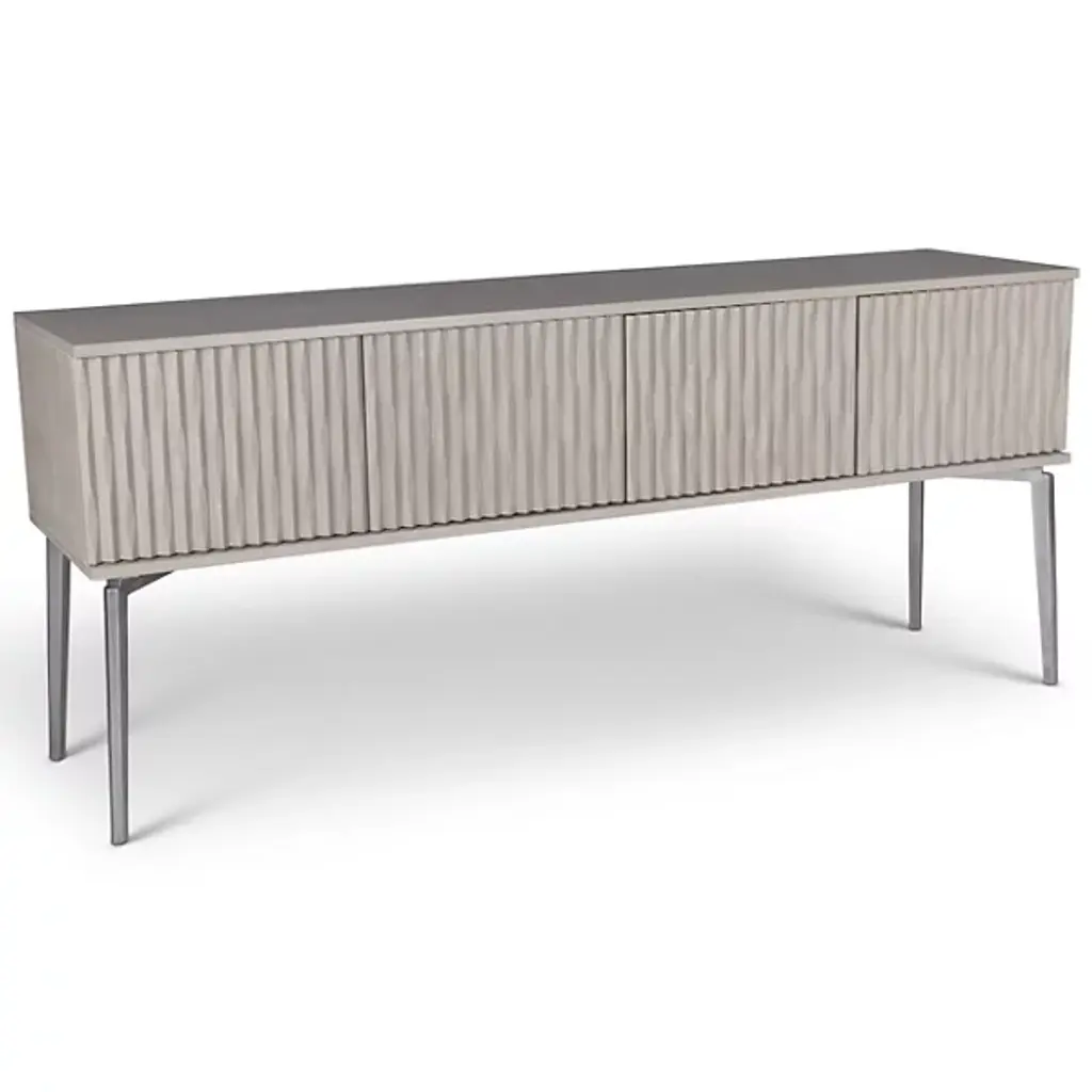 Made from durable materials such as solid mindi wood, mindi veneer, engineered wood, and cast aluminum, the Urbia IE Series Olas Buffet is a high-quality piece of furniture that’s sure to add functionality and style to your home. This sideboard buffet features intricate carvings on the front of the unit, four cabinet doors, and three adjustable shelves so you can customize your storage needs. Enhance your dining or living space with this functional and contemporary piece.