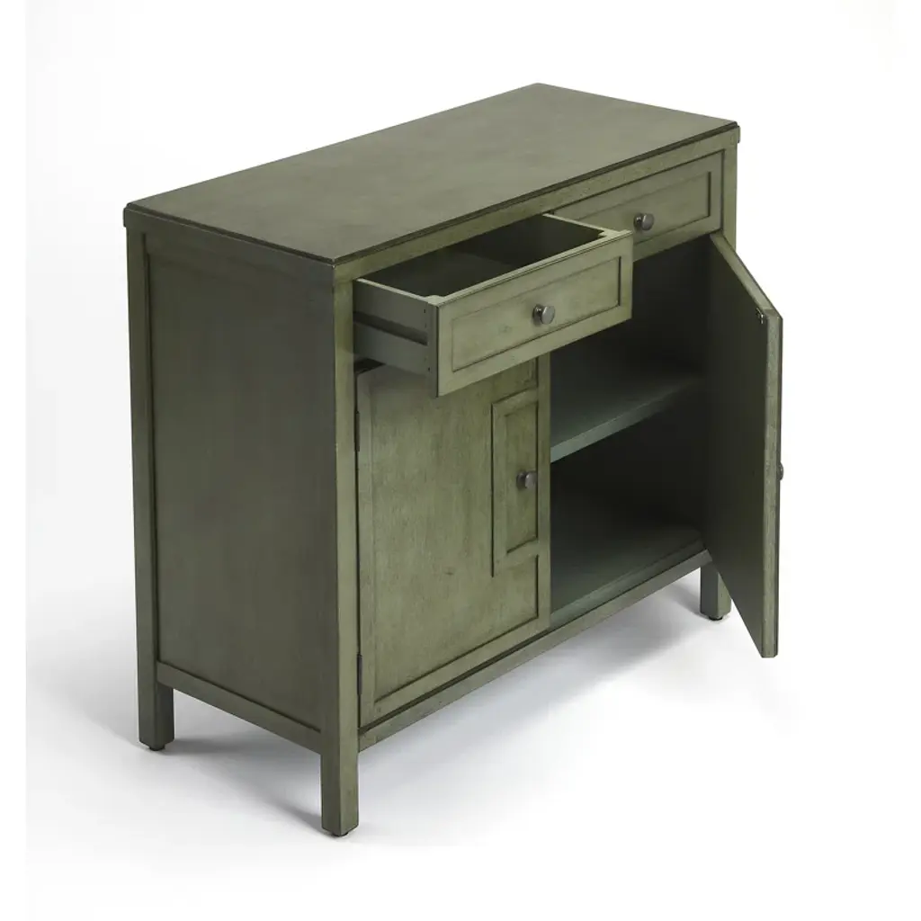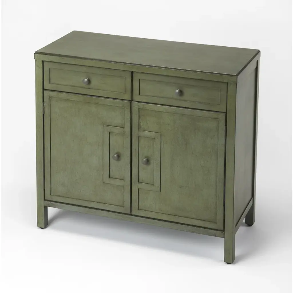 This 2-door accent cabinet keeps your living room or dining area organized and clutter-free. It's clean-lined and crafted from solid and engineered wood, and it rests on four sturdy legs for a classic look that we love. Two drawers are set above two paneled cabinet doors that show off geometric edge detailing. And there's plenty of space inside to keep your dinnerware and entertaining essentials. Bonus: A wall anchor is included for extra safety and stability.